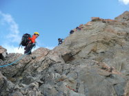 Wir haben ca. 30' bis 45' unter dem Gipfel umgekehrt infolge der am Sonntamorgen eintreffenden Gewitterfront. Hätten wir gewusst, das diese nach nur einer Stunde vorüber wäre und danach wieder bestes Sonnenwetter herrschen würde, hätten wir ausgeharrt. Aber eben: Safety first!