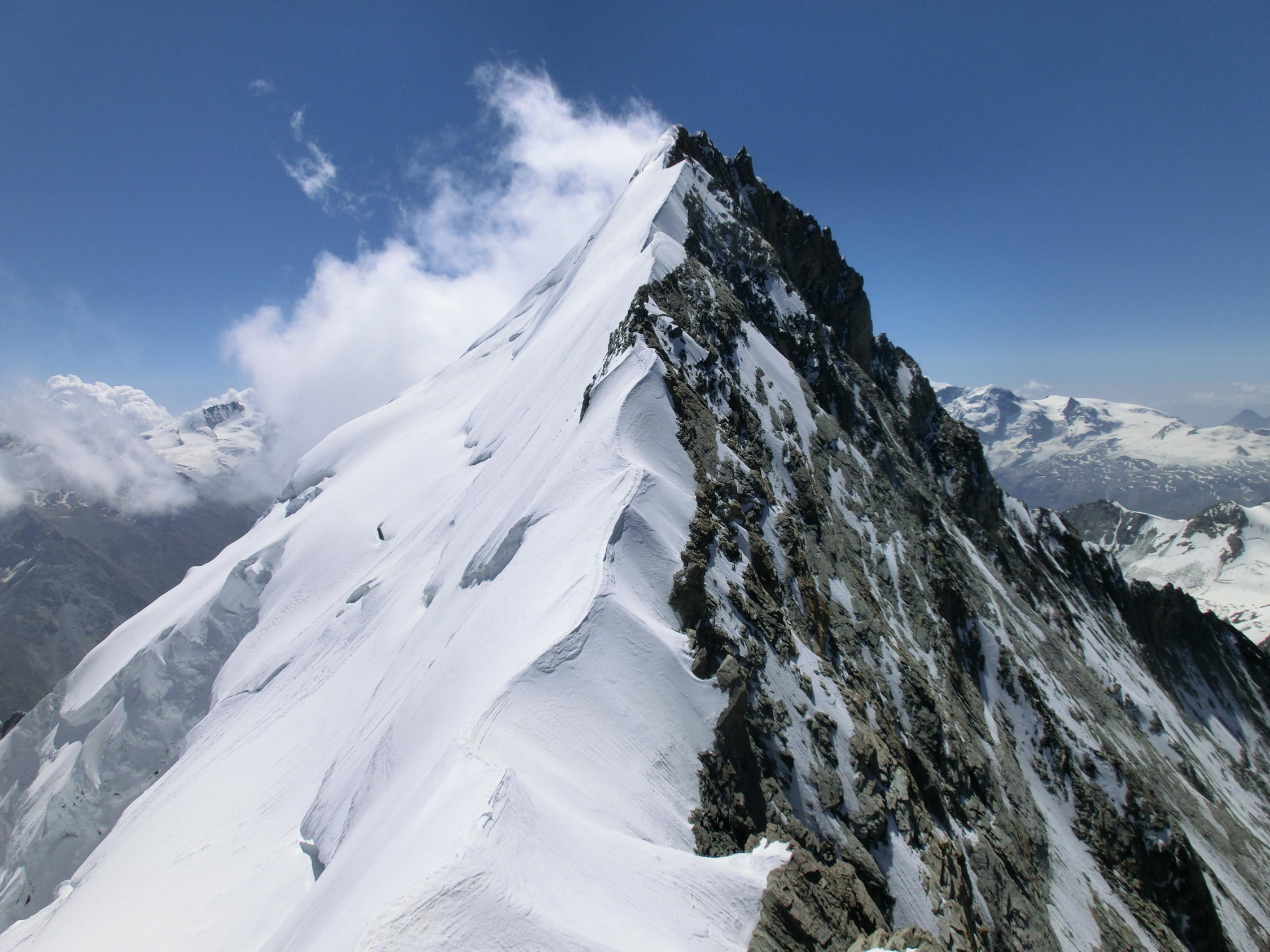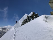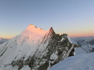 die Bedingungen sind momentan super: Start um 2:30 Uhr mit einem problemlosen Gletscheraufstieg zum Bishorn; der Felsteil des Nordgrates besteht aus trockenen kompakten Fels, bis auf einige wenige Schneefelder dazwischen (wir sind das meiste ohne Steigeisen geklettert); Abseilstellen (2 Stück im Nordgrat) sind gut eingerichtet; der Grand Gendarme ist mit zwei IVer Seillängen zu erklettern; der obere Firngrat hat guten Trittfirn, der Untergrund auf der Westseite war stabiler, auf der Ostseite schon sehr weich; im Prinzip alles Firn, nur selten kommt das Eis durch; im Abstieg (14 Uhr) auf dem Ostgrat schon sehr weicher Schnee, Kletterstellen im Felsteil sehr gut zum abklettern bzw. abseilen; bei der Felsstufe bei P. 3145m ist der unterste Abstieg sehr heikel aufgrund Überspülung der Abkletterstellen durch einen Bach;