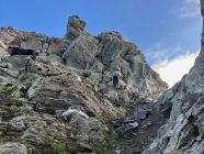 Wir haben den Wanderweg richting Bortelseewji gewählt und sind beim Staumauer W(N)W gewandert ohne weiteren Wegspuren. Ganz links vom horizontalen Gratstück angeseilt grat beim ersten Fixseil. Fixseilen sind prima (etwas alt). Wir waren im Nebel/Wolke ab hier. Meist klettern (I bisschen II) oder Wegspuren folgen. Abstieg gleicher weg - achtung dus man im Nebel nach punkt 2883m nicht rechts die W-Rippe wählt. Hütte war angenehm mit gutes Essen und Atmosphere - vielen Dank!