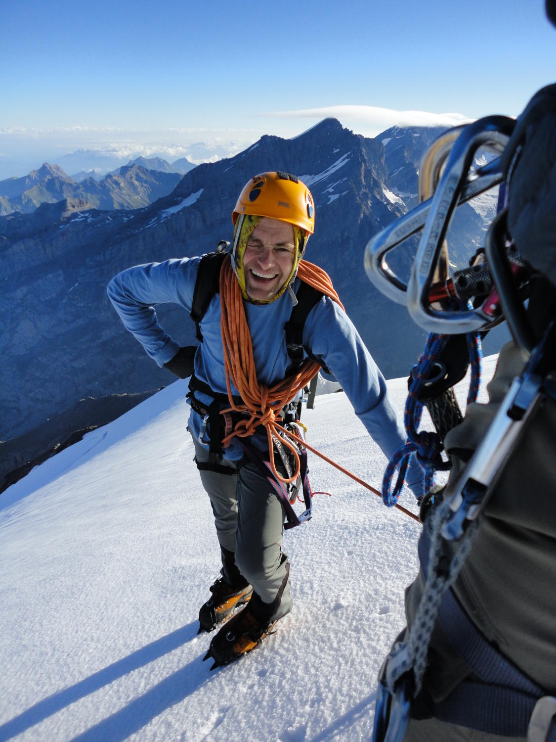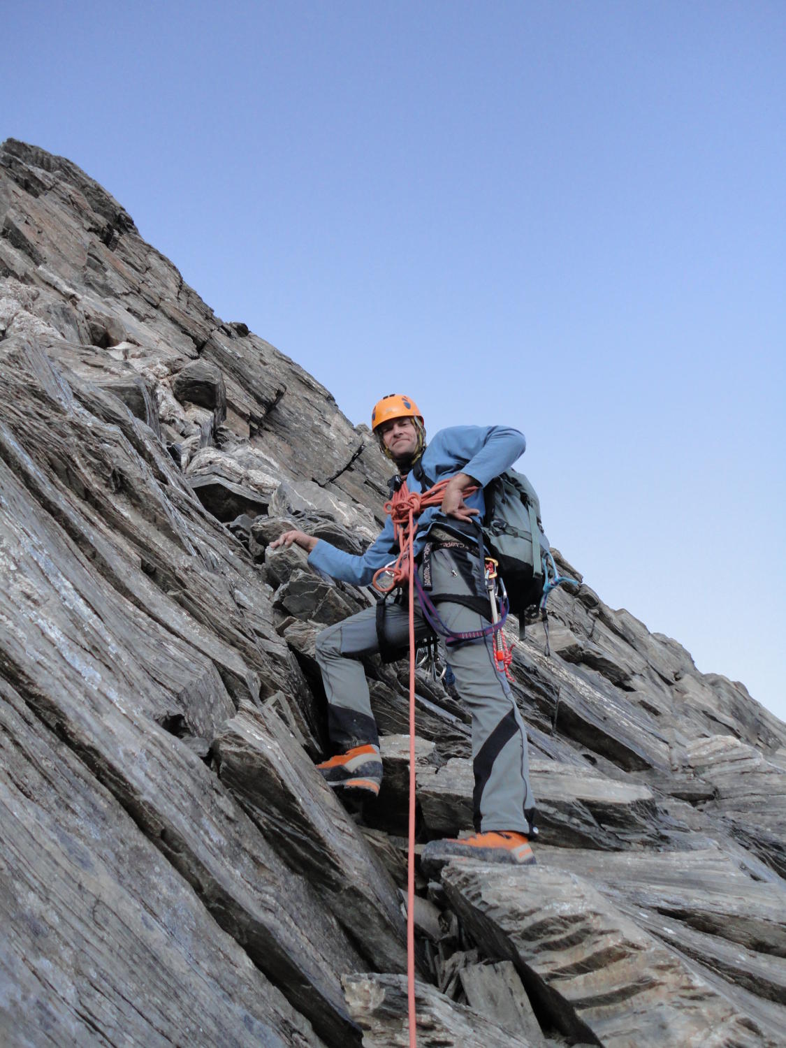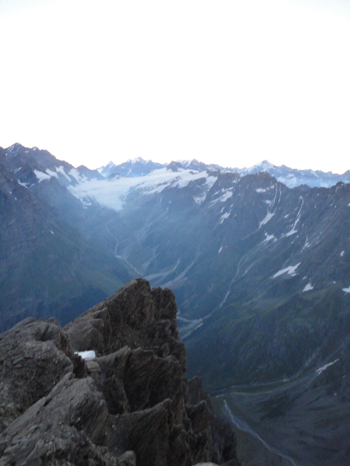 Abstieg über Zackengrat Schneefrei, wobei Grat bis Schwarzgletscher wieder die Steigeisen montiert werden, dort liegt noch Schnee noch kein Blankeis