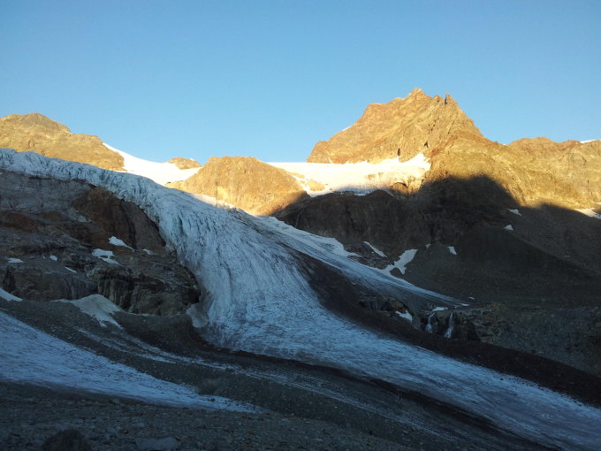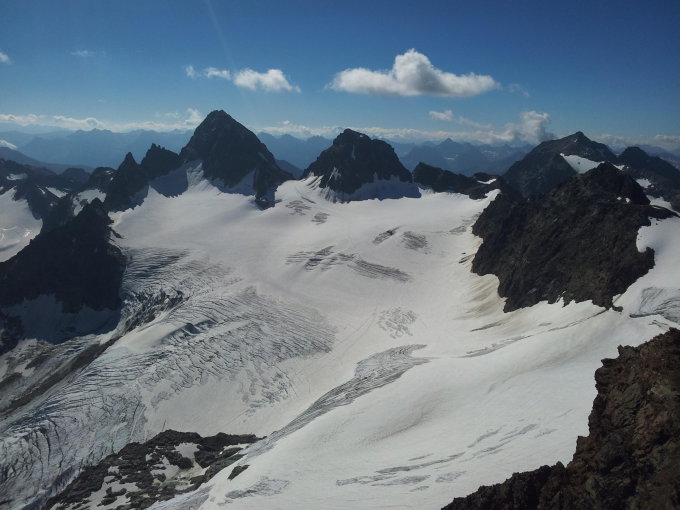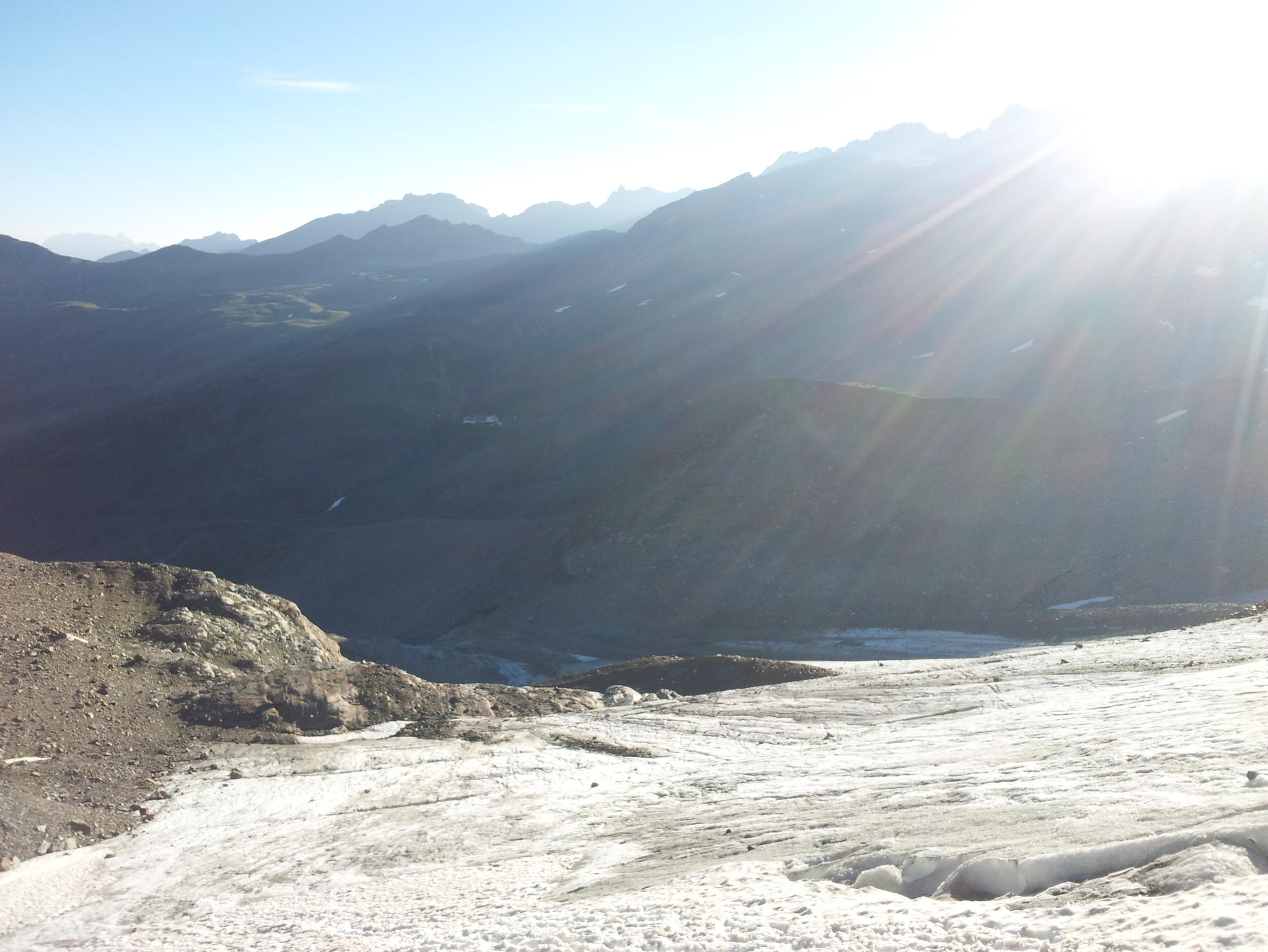 Gute Verhältnisse. Ochsentalgletscher und Silvrettagletscher teilweise (noch) schneebedeckt, Spalten jedoch gut sichtbar und Schneebrücken tragfähig bzw. gut zu umgehen. Aufstieg aufs Silvrettahorn: unbedingt linkshaltend aufsteigen (Steinmännchen), rechte Flanke akut Steinschlaggefährdet. Abstieg auf den Silvrettagletscher: zunächst in westlicher Richtung absteigen, dann südwestlich halten (weiter nördlich in der Rinne Steinschlaggefahr vom Silvrettagrat!). Den Gletscher betritt man bei etwa 2900m. Flanke nur noch stellenweise schneebedeckt - Abstieg wird mühsamer ohne Schnee.