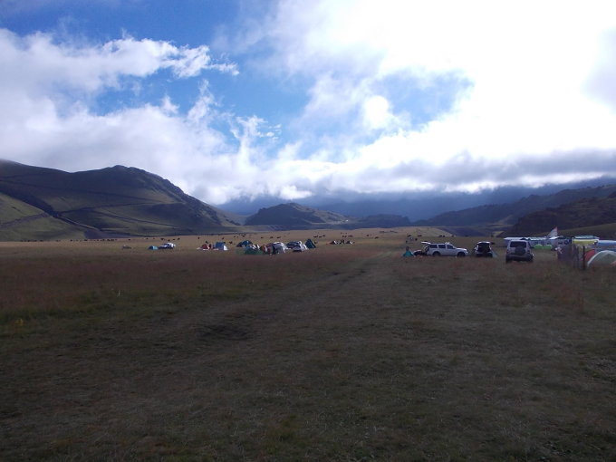 Wir starteten um 1 Uhr nachts bei etwa 10 cm Neuschnee vom Vorabend und befanden uns bei Sonnenaufgang bereits weit jenseits der 5000-Meter-Grenze. Ein eisiger Wind sorgte für gefühlte minus 20 Grad. Die Verhältnisse waren insgesamt sehr gut,allerdings musste der Ostgipfel selbst gespurt werden und im Abstieg gen Süden am frühen Nachmittag zog dort Nebel auf und verwehrte uns den gewünschten Ausblick zur Uschba und anderen bedeutenden Gipfeln des Kaukasushauptkammes. Zudem wurde der Schnee unangenehm sulzig.
