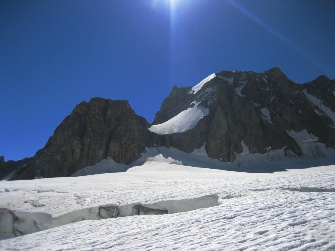 Verhältnisse nicht mehr optimal. Bis zum Beginn des NW-Grats griffiger Firn, wenig Spalten. Der NW-Grat ist gut zu besteigen. Im steilen Couloir der Westwand hatte es nicht mehr viel Schnee und Steinschlag. Der Bergschrund am unteren Ende des Couloirs wird schwierig zu überschreiten und ist von oben schlecht einsehbar. Viele Spalten am rechten Ufer des Saleina-Gletschers, wir sind in einem grossen Bogen ans linke Ufer hinübergequert und haben dann den Gletscher erst kurz vor Höhe der Hütte erneut überschritten (blau-weiss markierter Steig unterhalb der Hütte).