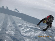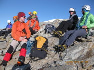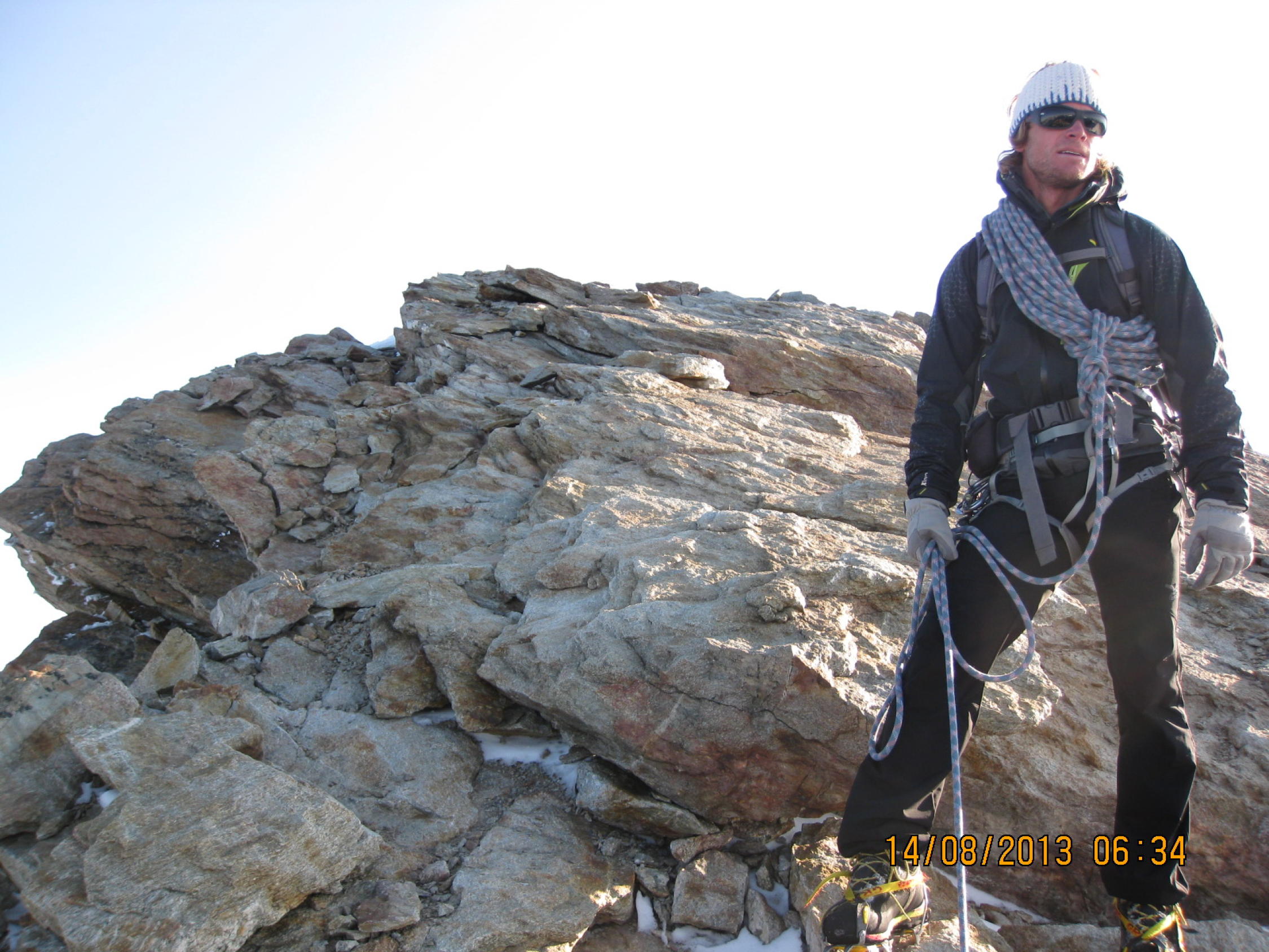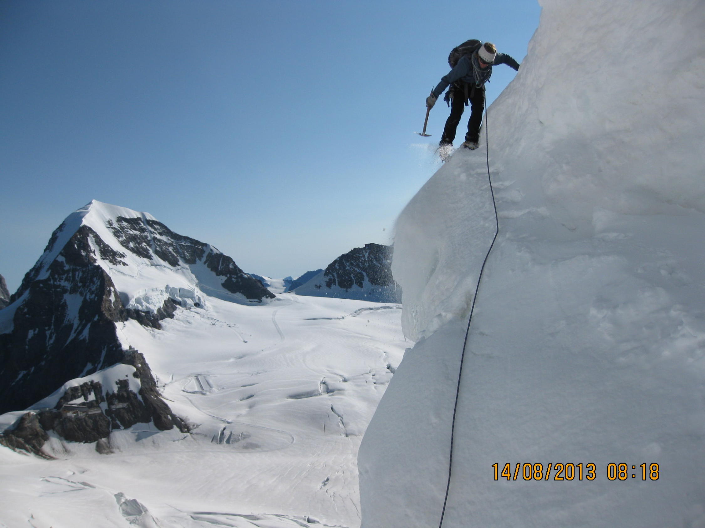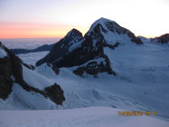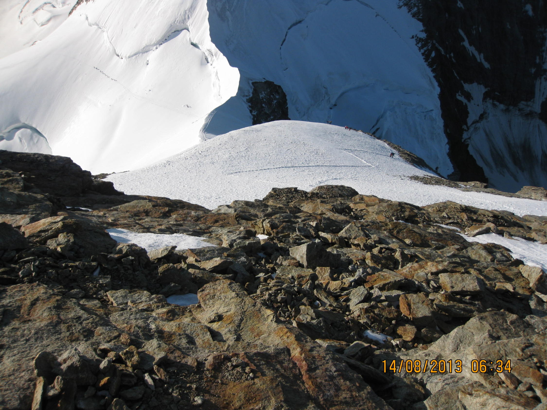 Mit den abstrahlend kalten Nächten tiptope Verhältnisse. Abmarsch Mönchsjochhütte spätestens um 4 Uhr. Bis Rottalsattel toll zu begehender Firn, unten am Sporn wenig Wassereis. Firn am Gipfelhang wird knapp, Blankeis gügslet hervor, ist aber noch griffig.