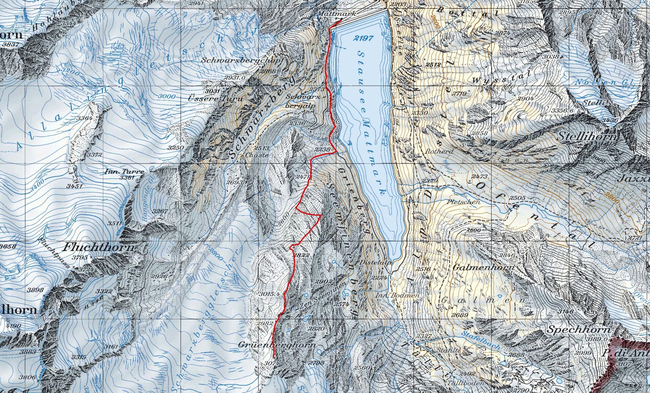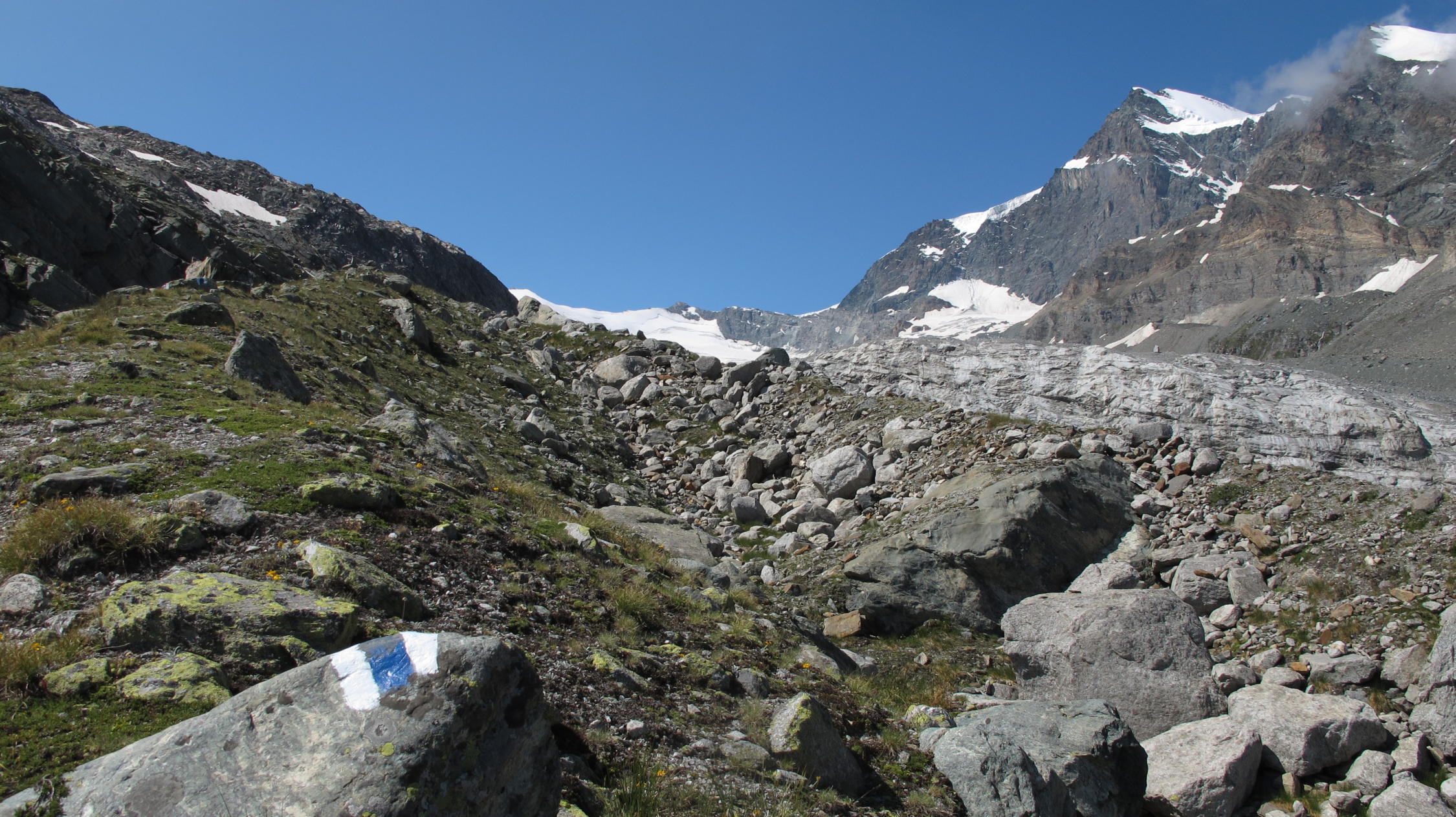 Die alternative Route über den Schwarzberggletscher war mir als Solist zu heikel, obwohl der Gletscher nicht mehr schneebedeckt ist. Die Blockkraxlerei und Balance Übungen haben mir enormen Spass gemacht.