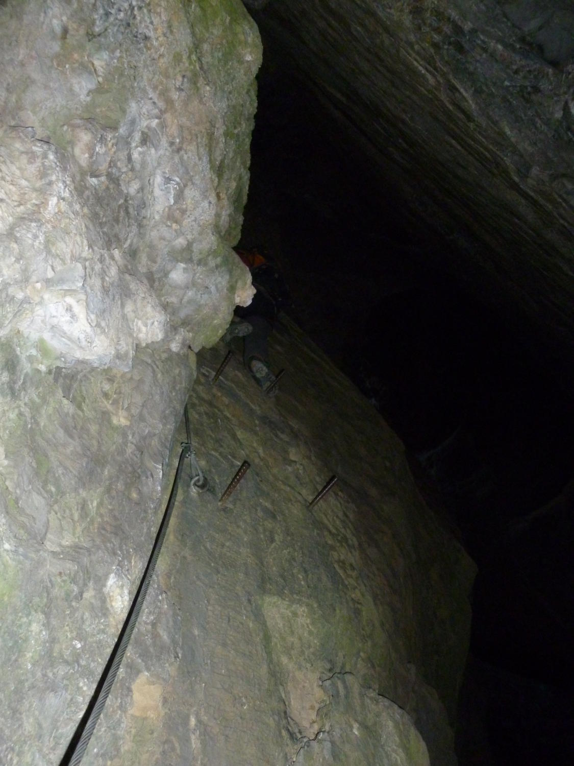 Der Klettersteig kann mit einer guten Fuss-Klettertechnik relativ energiesparend geklettert werden. Es gibt kaum eine Stelle, an der wirklich Kraft notwendig ist. Umso stärker man das Drahtseil für die Fortbewegung benötigt, umso energieraubender wird der Klettersteig. Ohne Fuss-Klettertechnik dürfte dieser Klettersteig eine konditionelle Herausforderung sein. Der Klettersteig ist lang!
