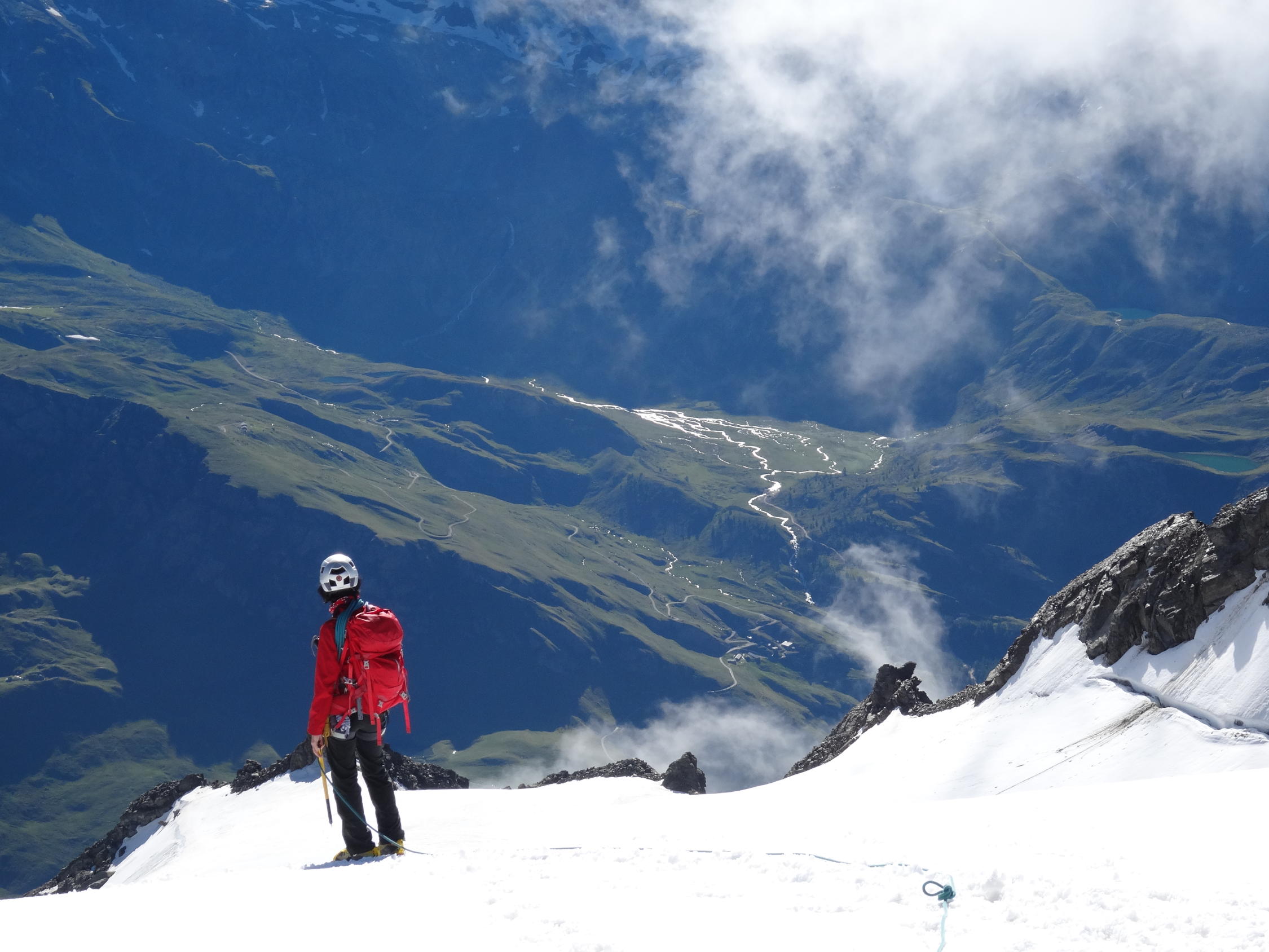 Felsgrat komplett trocken. Gletscher im sehr guten Zustand, Schnee hat sich komplett gesetzt.