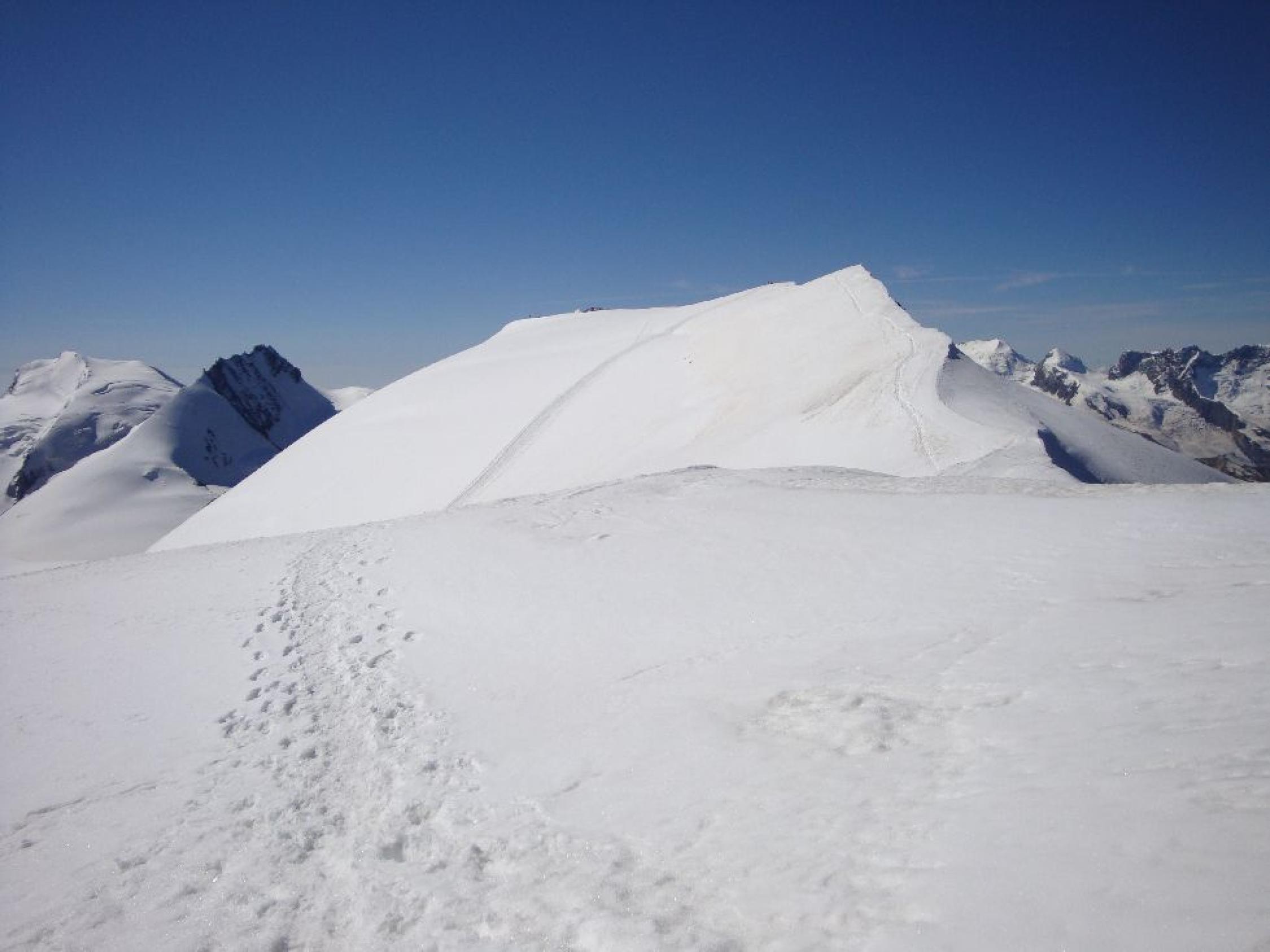 Eine lohnende Alternative zu den anderen Routen am Alhubel. Man ist ziemlich sicher eher alleine auf dieser Route im Aufstieg, dafür muss man sich den langen Zustieg über etwas äzende Schutthalden erst einmal verdienen. Doch wenn man dann den Sonnenaufgang am Beginn des Weingartengletschers erlebt, sind die ersten Mühen bereits wieder vergessen. Der Nordgrat selber ist relativ einfach führt aber über schönen Gneis, mit am Schluss einer netten kurzen "Firnleiter" auf das Gipfelplateau. Die Verhältnisse sind zur Zeit perfekt. Abstieg über die Normalroute ist auch problemlos. Eisnase soll auch noch gut sein, aber bereits etwas eisig, respektive "knuspriges" Eis.