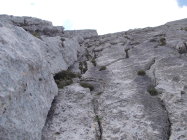 Insgesamt bombiger Fels, gute Absicherung, tolles Ambiente. Wunderschöne Kletterei, wenn man sich erst mal durch die 1. SL durchgewurstelt hat.