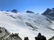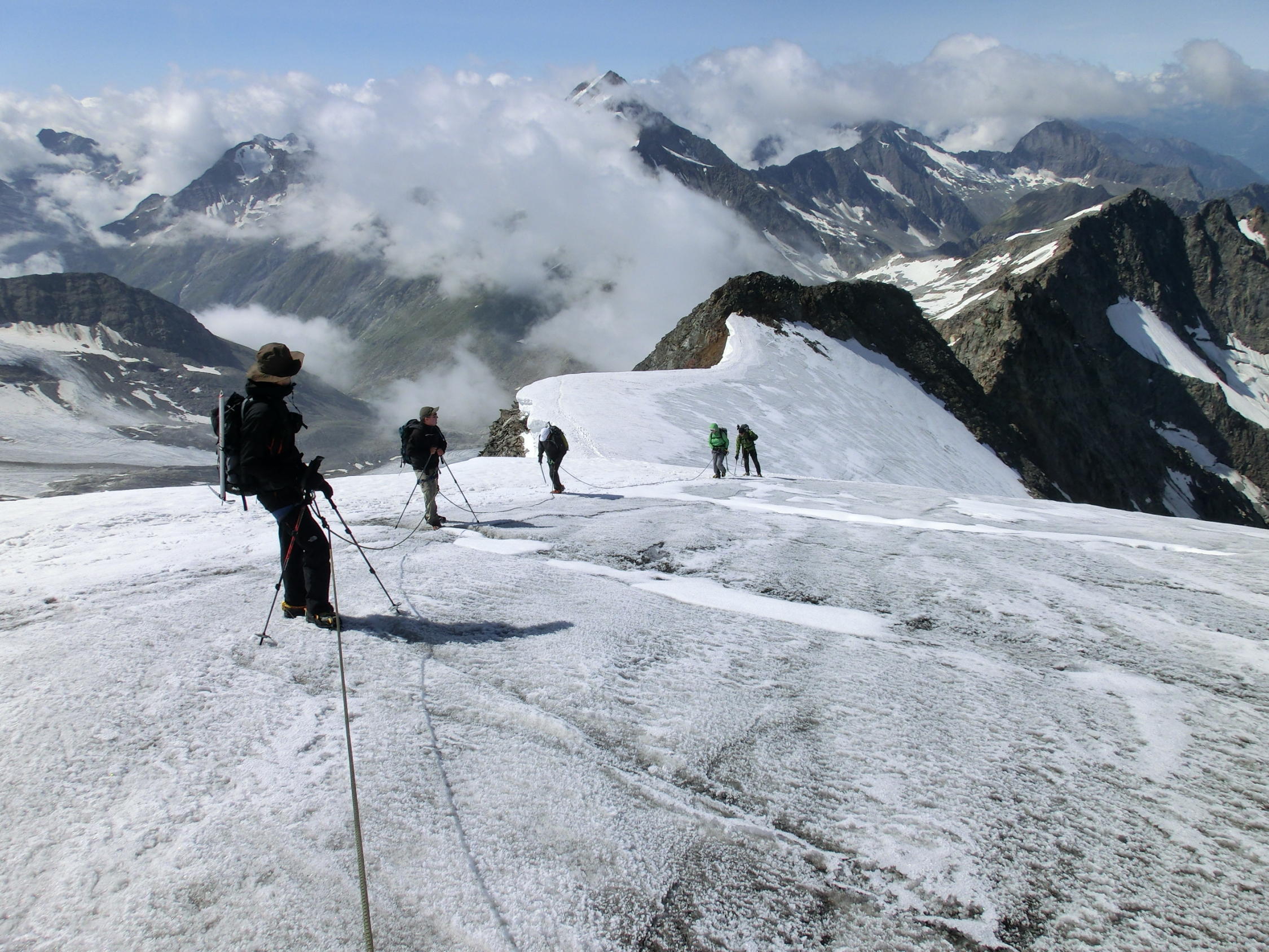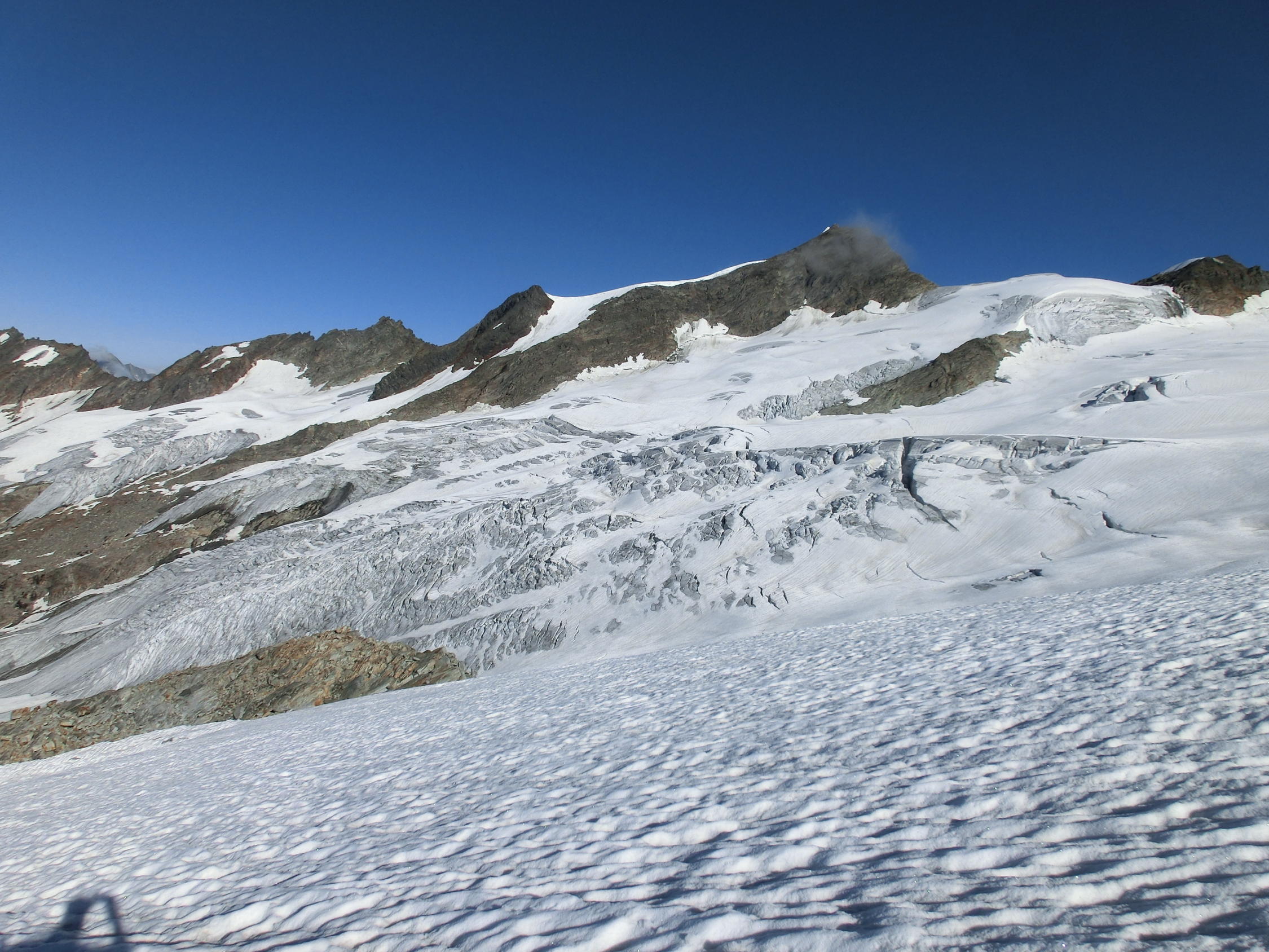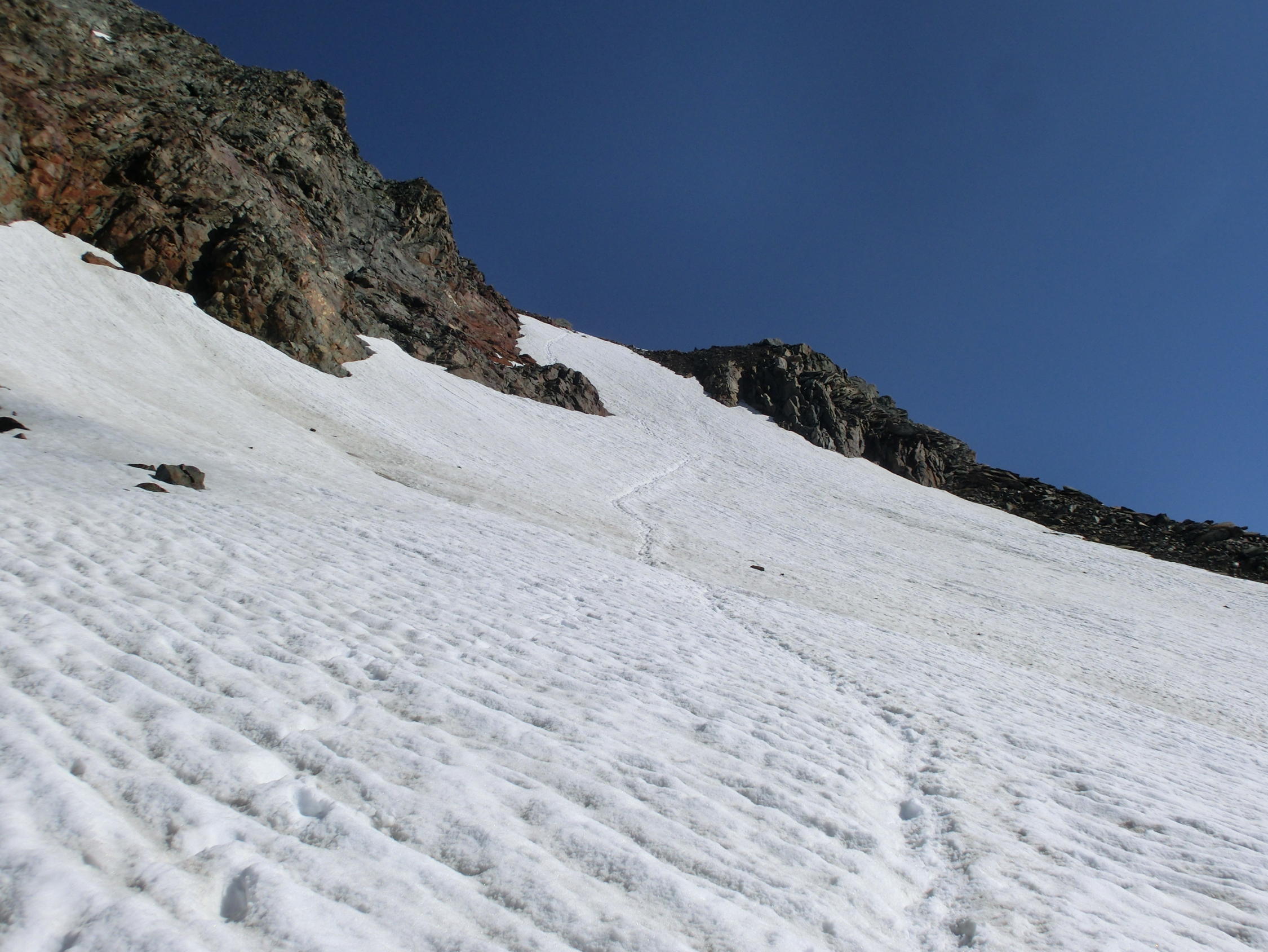 noch viel Schnee auf dem Umbalkees, daher waren die meisten Spalten noch gut bedeckt; eine meist problemlose Spur konnten wir wählen; auch die Firnflanke hatte guten Trittfirn; insgesamt daher sehr gute Verhältnisse momentan;