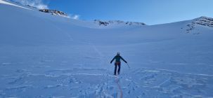 - Der Gruebugletscher mit einer guten Spur ausgestattet, Spalten geschlossen und die Schneedecke hält.