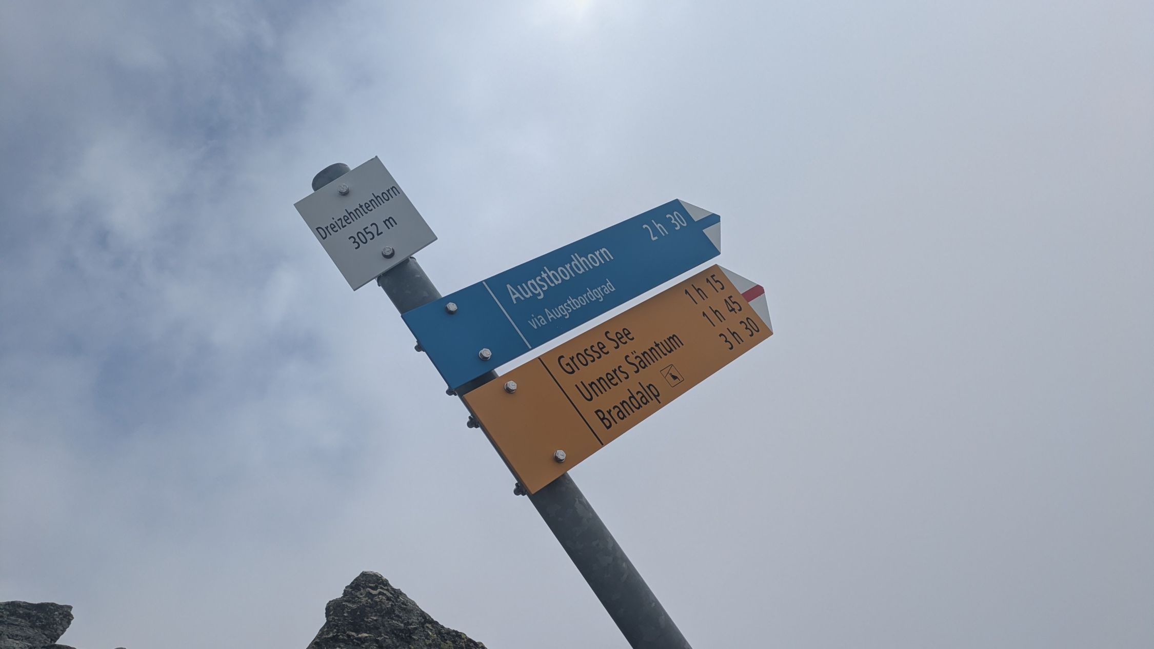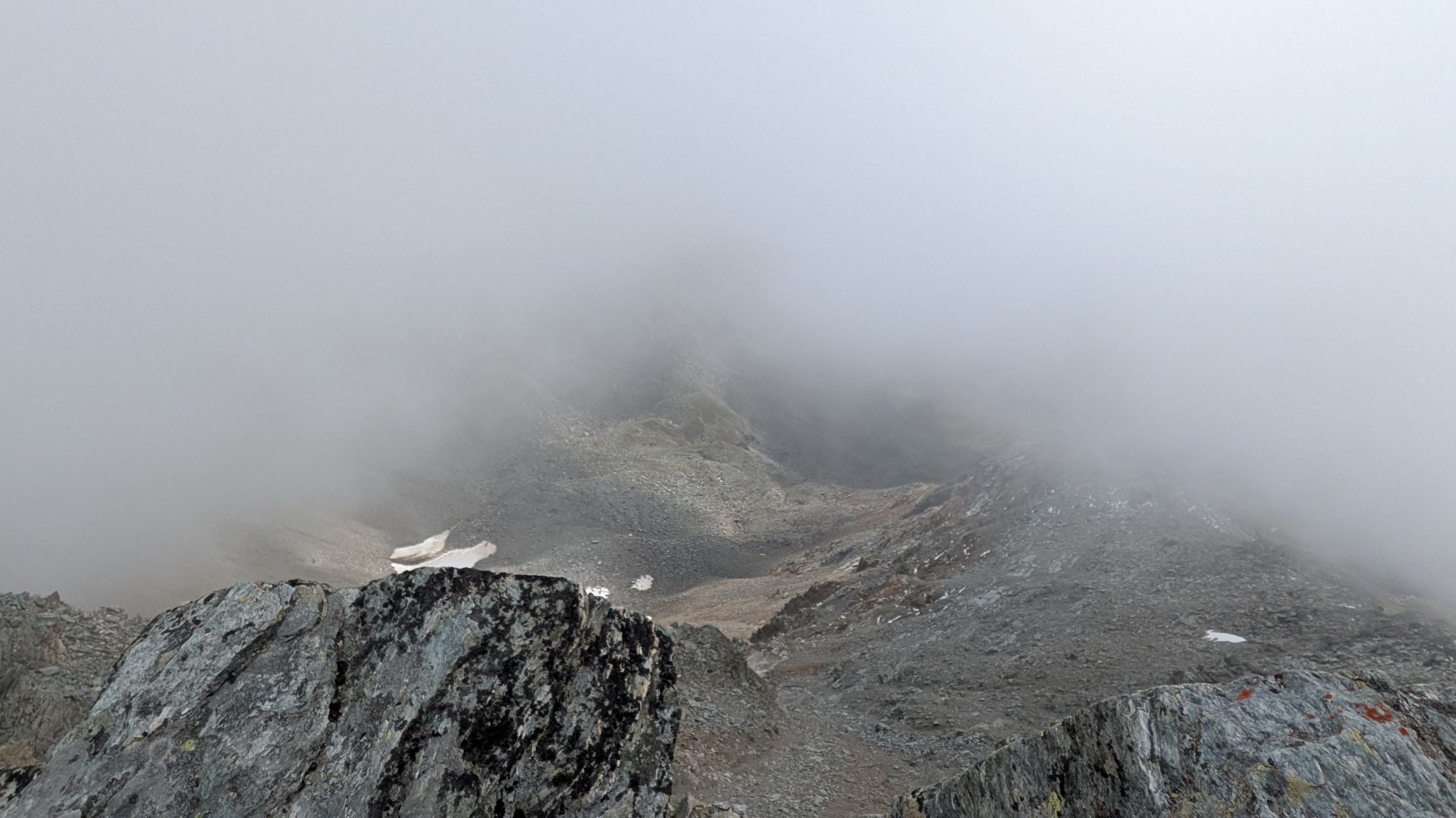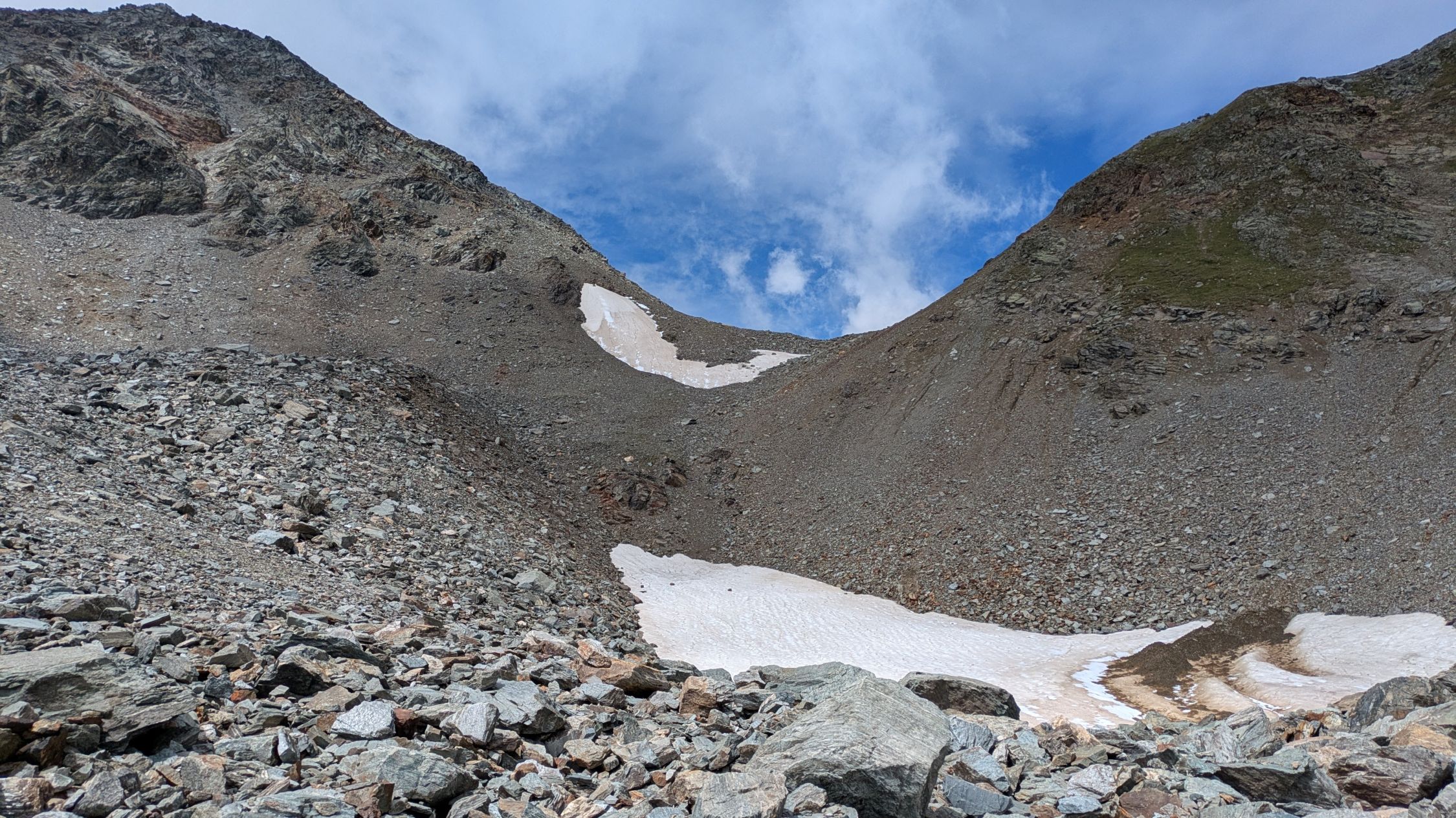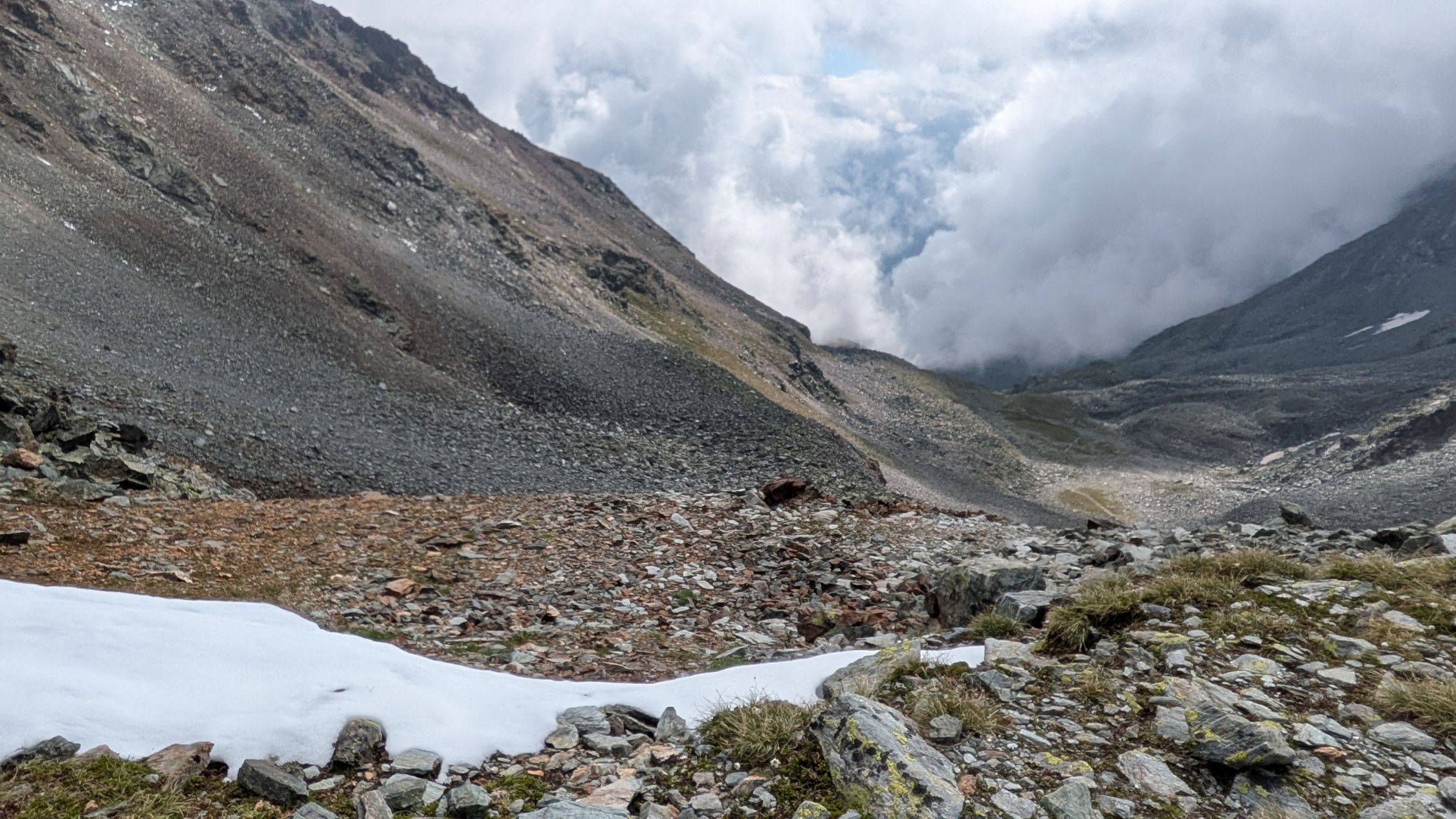 kühle aber angenehme Temperaturen. Auf dem Schwarzhorn hatte es noch etwas frischen Neuschnee. Den Weg durchs Rots Tälli ist nicht markiert und sehr unwegsam über Geröll