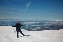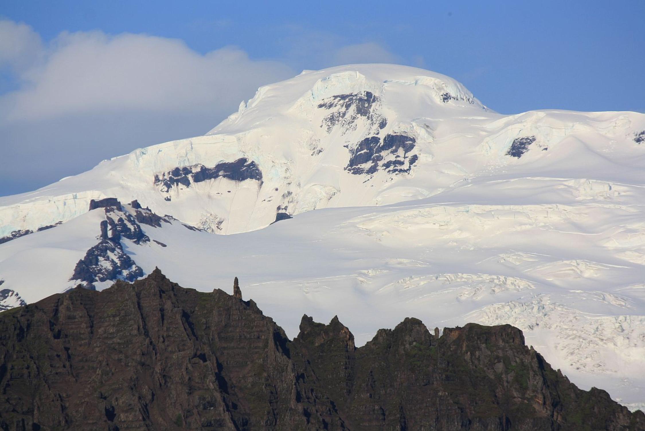 ... Um 3:30 Uhr klingelte mein Wecker und mein schönster Tag auf Island konnte beginnen. Nach einer halben Stunde setzte ich mich aufs Fahrrad und fuhr über die Ringstrasse zum Parkplatz Sandfell. Es war hell und kein Auto begegnete mir. Ab und zu standen Schafe auf der Strasse und ich wusste nicht ob sie nach links oder rechts davonliefen. Neben Schafen hörte oder sah ich unterwegs zahlreiche Vögel die die Schwemmebene Skeiðarársandur besiedeln. Nach etwa einer Stunde war ich in Sandfell wo ich nochmals etwas ass und trank bevor es zu Fuss weiter ging. Auf meiner Karte war der Weg falsch eingezeichnet so dass ich schon zu Beginn erst einmal die Route suchen musste. Bald fand ich jedoch Pfadspuren und traf auf einen Steg über einen Bach. Nun wusste ich dass ich auf dem richtigen Weg war der nun auch klar sichtbar wurde. Das sandige Weglein führte nun stets bergauf über die Bergflanken von Sandfellsheiði und schon bald wurde die Aussicht mit jedem Meter phantastischer. Auf etwa 400m erreichte der Pfad ein kleiner Bach dem er einige Höhenmeter folgt. Es ist das letzte flüssige Wasser das man antrifft und so füllte ich meine Trinkflaschen nochmals auf. Nach weiteren 150m Aufstieg auf einer Höhe von etwa 550m erreichte ich schliesslich den Gratrücken Stóralækjargljúfur wo ich eine kurze Rast einlegte. Als ich weiter dem staubigen Pfad auf dem Gratrücken folgte endete bald die Vegetation und tauchte in eine Gröllandschaft ein. Das Gelände wurde nun zusehend wieder steiler bis man auf knapp 750m durch eine Felsstufe steigt. Hier eröffnet einem bei einem grossen Steinmann ein weites Geröllfeld. Zuerst war mir nicht klar wo es nun weiter gehen sollte und ich lief einfach über die Steinbocken weiter auf dem nun breiten Bergrücken. Bald traf ich jedoch wieder auf Wegspuren und Steinmännchen. Es folgte nun ein längeres Stück über die vulkanische Einöde mit wenig Steigung. Nach der Geröllwüste waren die letzten knapp 100 Höhenmeter zum Gletschereinstieg wieder steiler. Ich befand mich nun auf etwa 1050m und eine riesige Firnfläche lag vor mir. Auf dem Gletscher hatte es eine klare Spur und weit oben sah ich eine Zweierseilschaft. Ich rastete nochmals und montierte meine Steigeisen an die Bergschuhe. Die Dimensionen täuschen hier extrem, der Schneehang schien nicht besonders gross, doch sind es bis zum Kraterrand schlappe 750 Höhenmeter! So marschierte ich den nur etwa 20° steilen Hang hinauf und ich fragte mich stets wie weit es denn noch gehen würde da er gegen Oben wieder flacher wurde. Ich lieg bis zum Kraterrand mit lediglich einer kurzen Trinkpause und natürlich mit einigen Fotostopps denn die arktische Landschaft ist echt der Wahnsinn. Als ich schliesslich auf dem Kraterrad stand öffnete sich endlich die Sicht zum Hvannadalshnúkur am anderen ende des eisgefüllten Kraters. Nach links ist er geöffnet und das Eis fliessta ab wodurch sich dort enorme Gletscherspalten auftun. Obwohl auf der Karte die Route mittendurch die Spaltenzone führt, muss man in einem grossen Rechtsbogen zum Hvannadalshnúkur gehen was sicher einen Kilometer Umweg ist. Frisch nach einer Pause gestärkt lief ich durch die flache Eiswüste dem Gipfel entgegen wo mir in ältere Herr aus Deutschland entgegen kam. Er war sehr früh gestartet und sagt dass am Gipfel optimale Bedingungen seien. Als ich den ebenen, eisgefüllten Krater des Öræfajökull gequert habe, stand ich unter dem finalen Gipfelaufbau. Hier holte ich auch die zwei grossen geführten Gruppen der Isländischen Bergführer ein die zwei Stunden länger als ich von Sandfell bis hier hinauf brauchten. Auf einer gut angelegten Spur stieg ich nun in Richtung Gipfel wobei das steilste Stück etwa 30° Neigung aufwies und zwischen zwei Eiswänden durchführte. Zuletzt ging es noch kurz ein waagrechtes Stück zur letzten Schneekuppe wo sich einige Spalten versteckten. Die oberste Schneekuppe war nun rasch bestiegen und ich stand auf dem höchsten Punkt Islands! Die Aussicht war enorm und man konnte auf sämtliche Gipfel herunter sehen. In der einen Richtung grüsste das Meer über dem sich aber leider inzwischen einige Wolken gebildet hatten, gegenüber ist das riesige Gletscherfeld Vatnajökull aus dem nur wenige Gipfel aufragen. Es war nahezu windstill und die Temperatur war deutlich über 0°C. Dennoch verweilte ich nicht allzu lange oben da ich befürchtete dass der Schnee im Abstieg weich werden würde. So kam es dann leider auch nachdem ich wieder vom Kraterrand abstieg. Ich sank öfters bis zu den Knien ein und musste bei einer kleineren Spaltenzone besonders gut aufpassen. So war ich erleichtert als ich den Gletscher verliess und endlich wieder Vulkanboden unter den Füssen hatte. Der Abstieg nach Sandfell zog sich jedoch noch in die Länge, die Dimensionen in Islands Bergen sind halt viel weitläufiger als in den Alpen. Nun musste ich nur noch mit dem Fahrrad zurück nach Skaftafell fahren was aber mit den Erinnerungen an den grossartigen Tag ein Vergnügen war trotz den Kilometer in den Beinen ...
