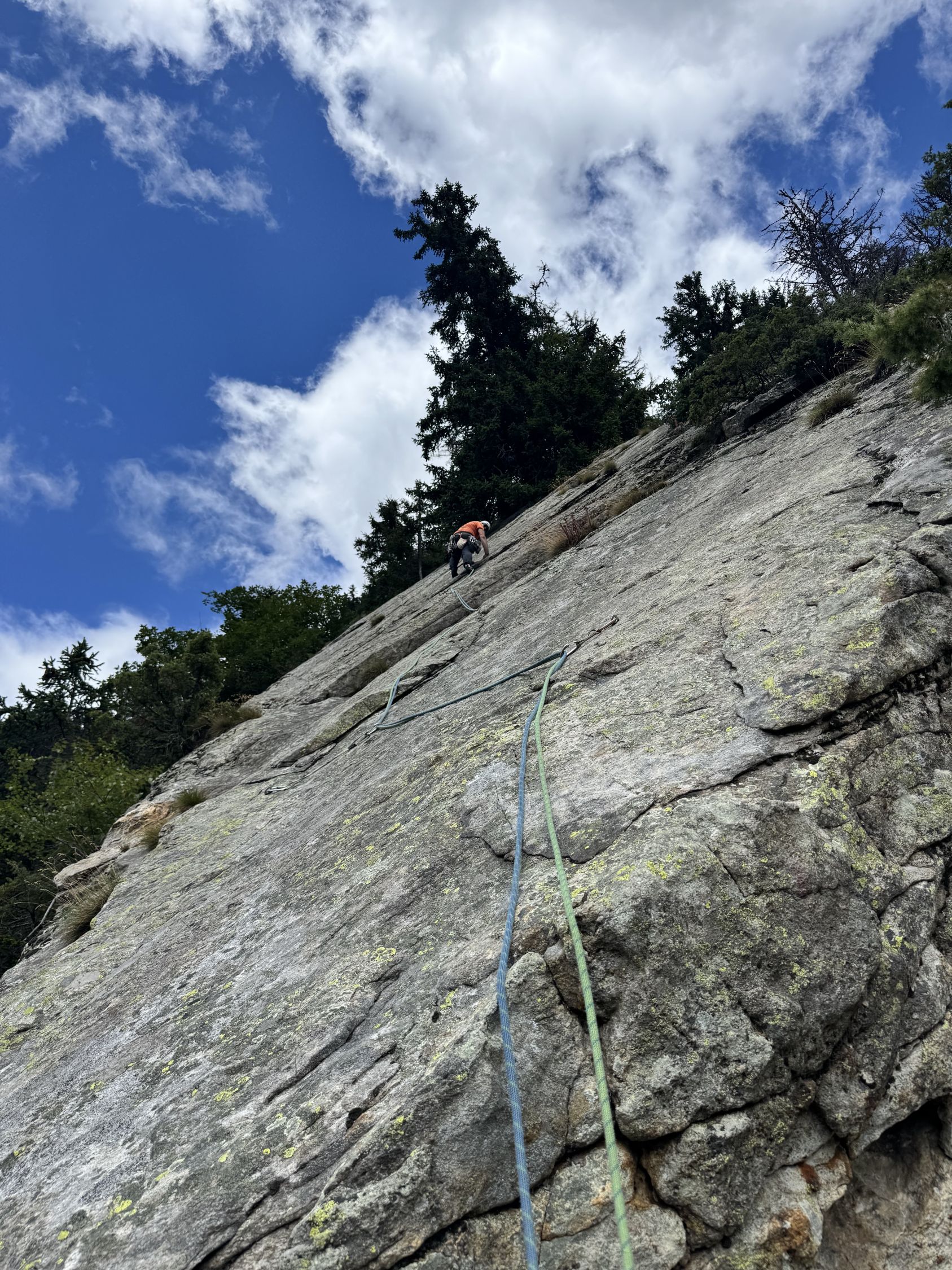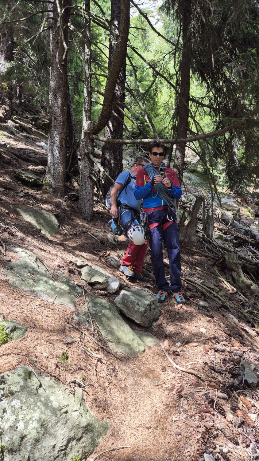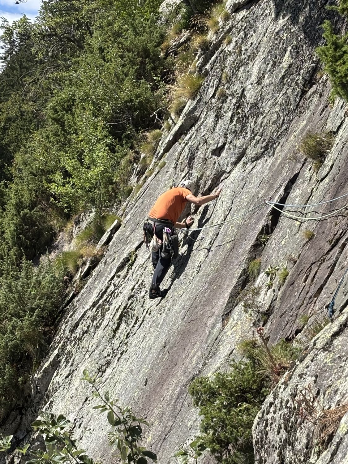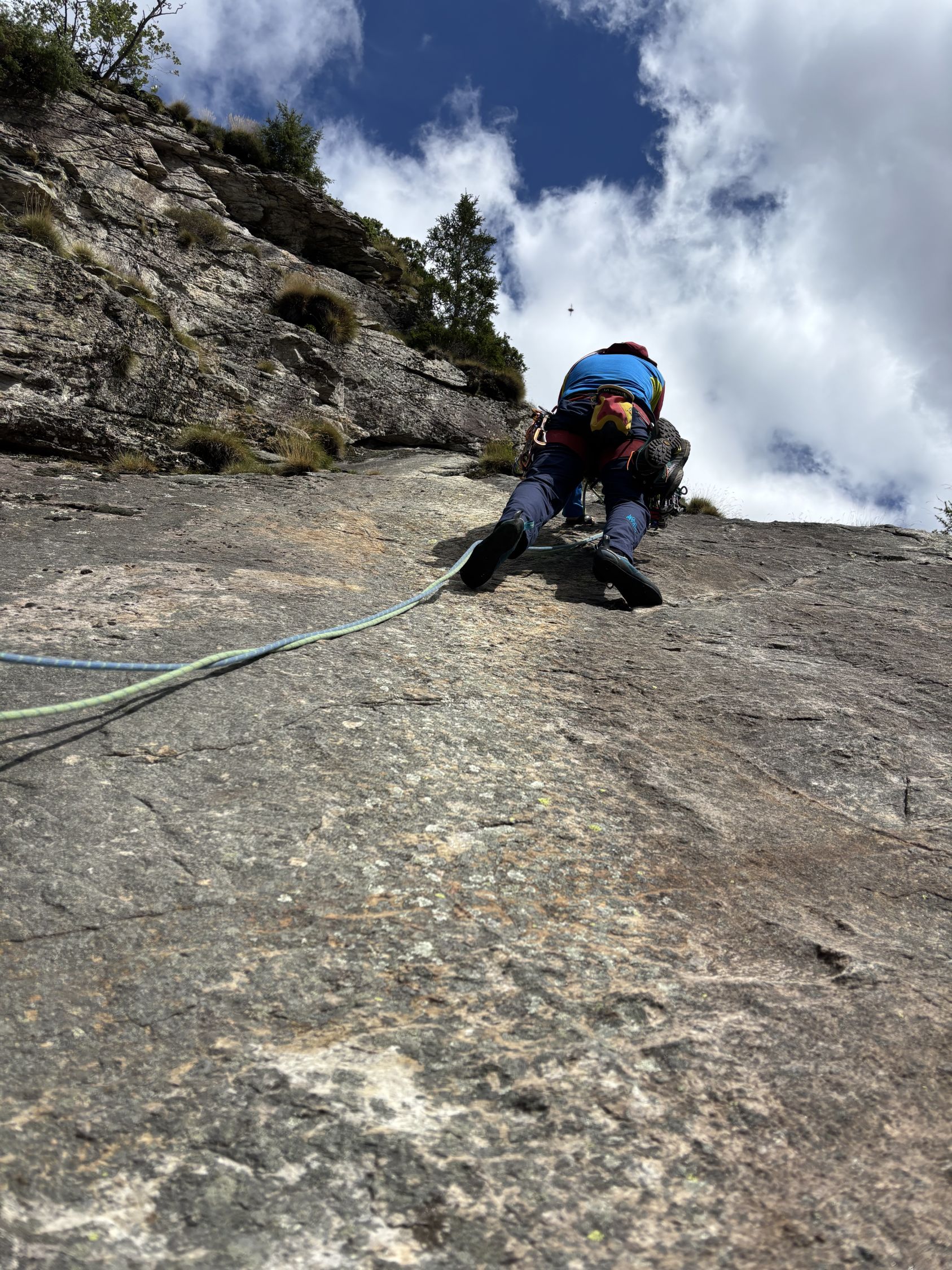 Wir wollten eigentlich etwas auf dem Gotthard klettern doch das Wetter hat nicht mitgespielt. Darum wieder einmal via del Veterano geklettert bis nachdem Quergang nach 15 SL - Genusstour mit 2 -3 Steilaufschwüngen welche in freier Kletterei bis 6a zu bewerten sind.