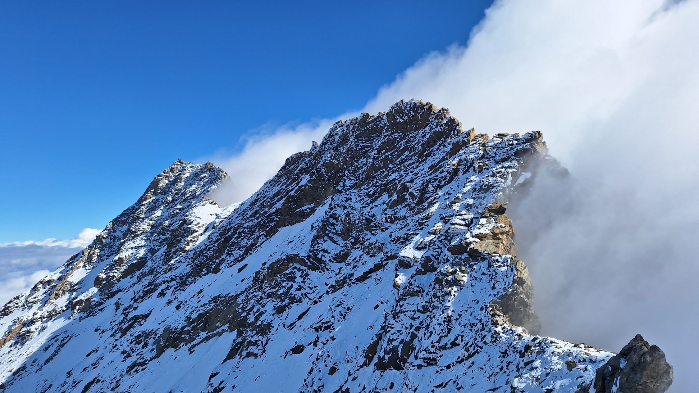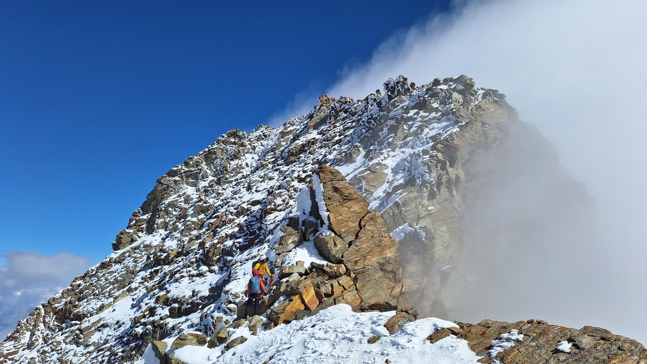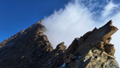 - ab da durchgehend Schnee in den Flanken (aber kein Eis!), die Gratkante selber aper