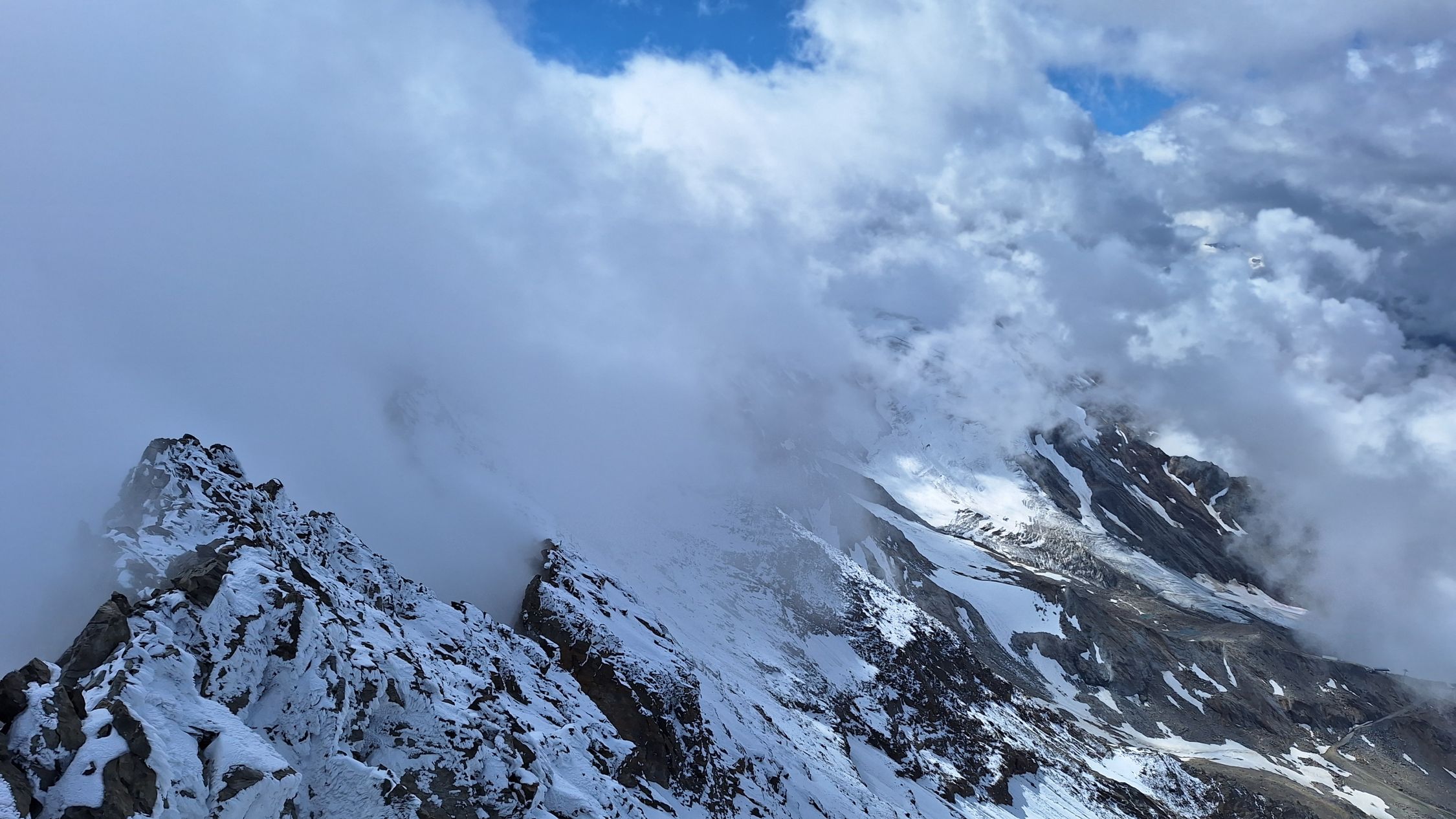 Auf der Normalroute wie üblich viel und polyglottes Volk. Das sorgt aber auch immer wieder für nette Gipfelschwätzchen. Am Südgrat habe ich einen japanischen BF mit Gast überholt. Ich durfte an der Abseilstelle freundlicherweise sein Seil benutzen. Das hat Zeit gespart und ich kam nicht auf dumme Gedanken. Sonst keine weiteren Seilschaften gesichtet.