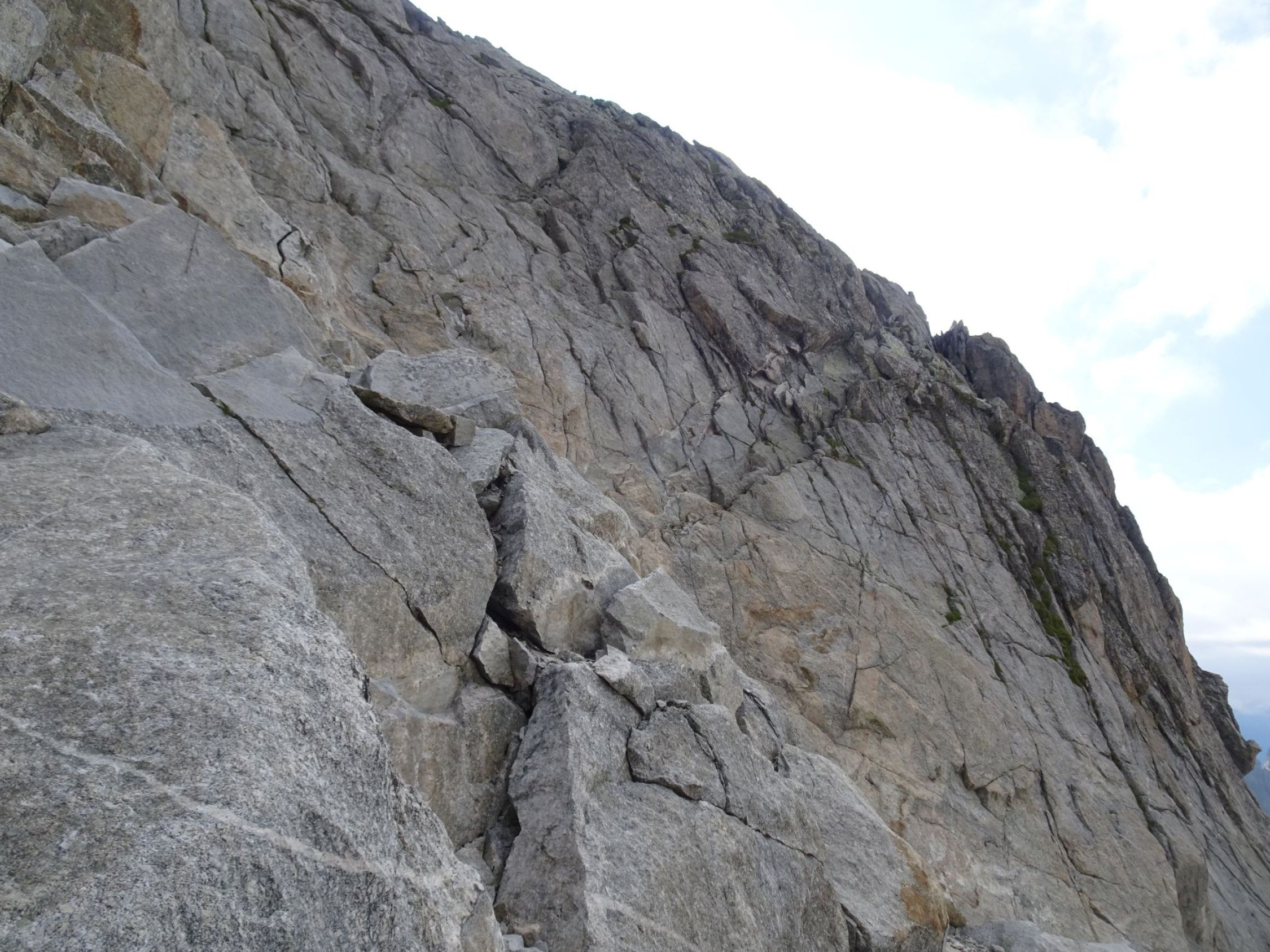 Super Fels, alles trocken, nur in Gipfelnähe teils dünner eisiger Überzug. Hier aber nicht ausgesetzt.