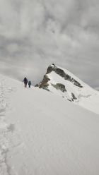 Kein Blankeis und eine mäßig gute Spur ist ausgetreten. Im oberen Teil der Kletterstelle liegt relativ viel Neuschnee was die Schwierigkeiten ein wenig aufwertet.