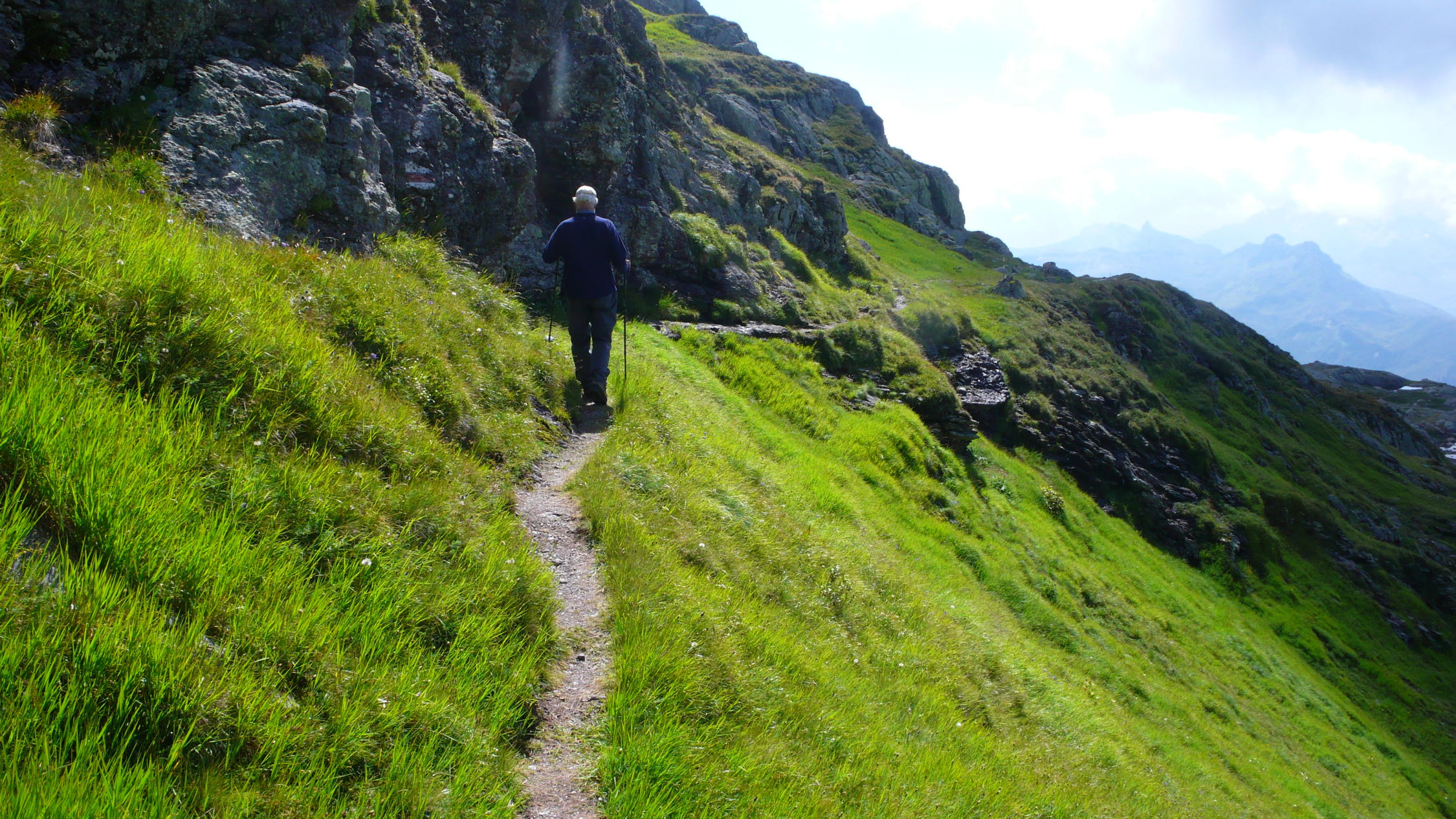 Gute Verhältnisse, Quellbewölkung über den Bergen, deshalb hauptsächlich Aussicht in die Täler. Einige Leute unterwegs zum Gufelstock.