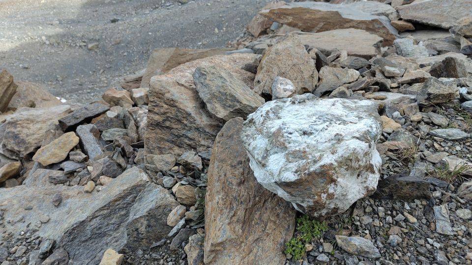 Der Fels ist erstaunlich gut, wenn man die weitläufigen Geröll- und Blockfelder der Umgebung kennt. Der Serpentinit ist ein faszinierendes Gestein: innen grünlich, aussen oft rötlich oxidiert. Es lohnt sich, die Steine genauer anzuschauen, findet man doch schöne Beispiele von Talk oder Asbest. Das obere Val Malenco ist geprägt von diesem Gestein und dessen Abbau und Verarbeitung.
