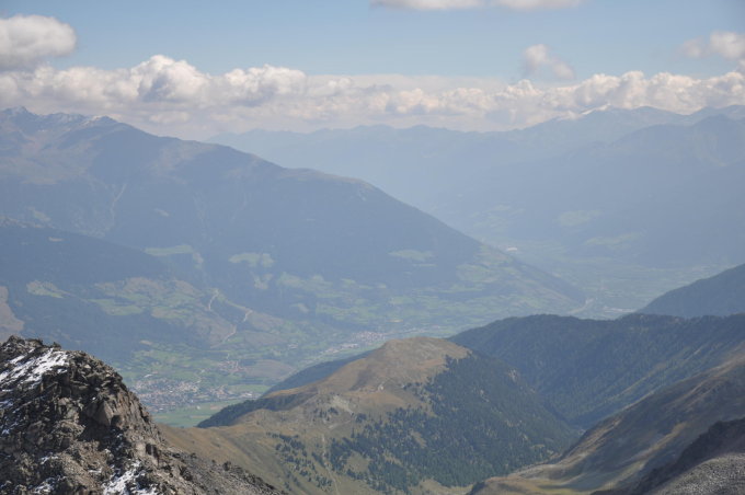 Die NE-Flanke ist wohl der schnellste, nicht jedoch der kräfteschonenste Aufstieg: Der Schutthaufen nimmt beinahe kein Ende. Zu oberst geht dann das ganze Gewühle in kompaten Fels über. Nach etwas mehr als 3.5 h wurden wir mit einem prächtigen Panorame belohnt.
