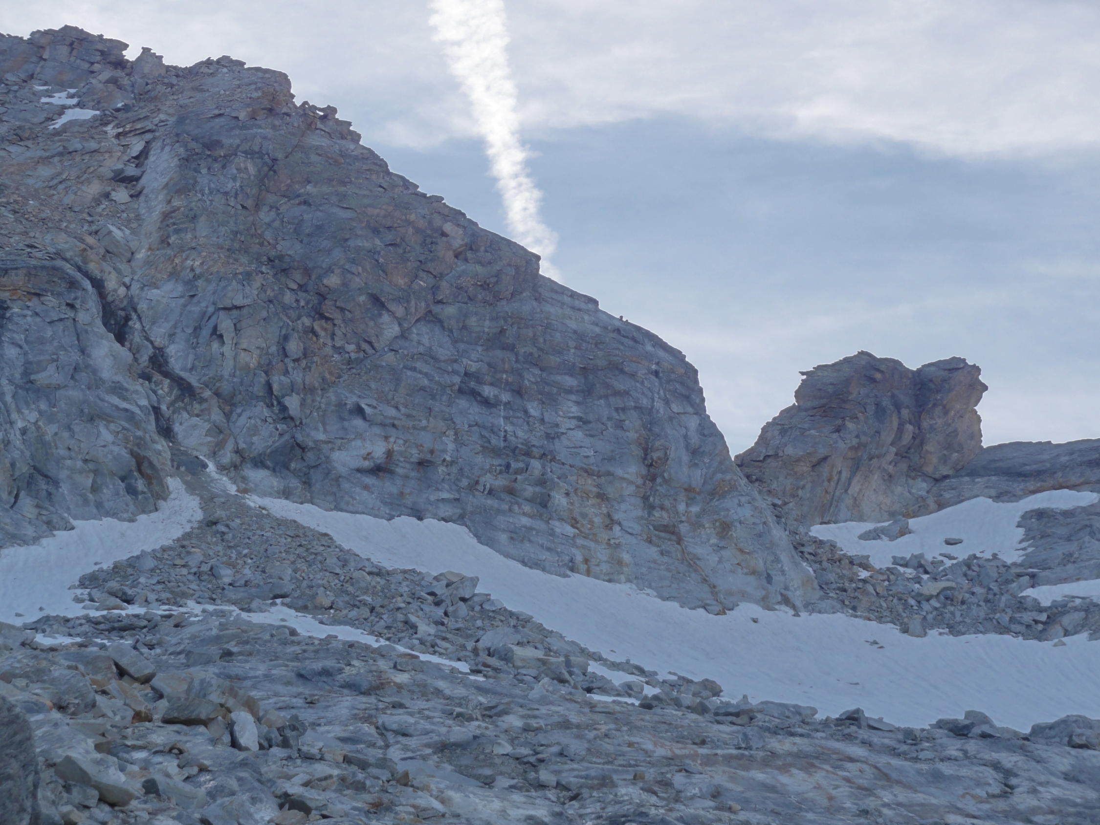 Gipfel bis Firnfeld: Ebenfalls trocken, wenige Schneereste in den Spalten und Löchern auf der Ostseite.