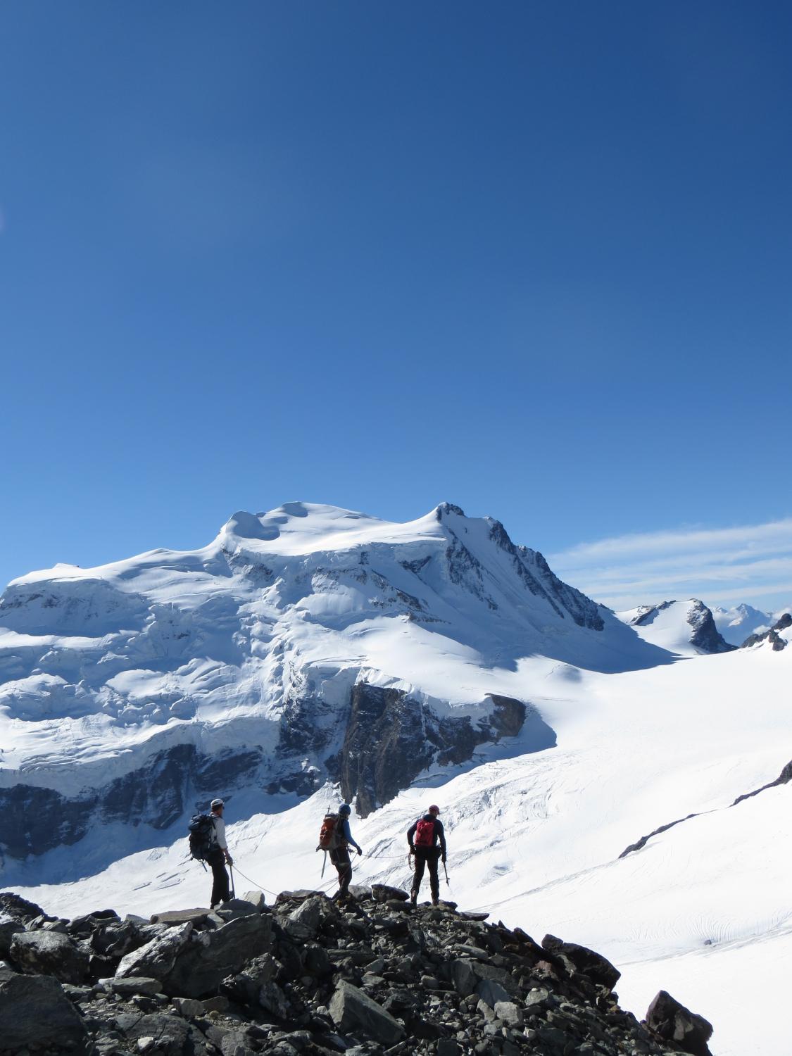 sehr gute Verhältnisse auf dem Gletscher wie auch im Zustieg zum Südgrat. Grat ist überall schneefrei, einzig ein paar Stellen, welche mit rauhreif überzogen sind. (schattseitig)