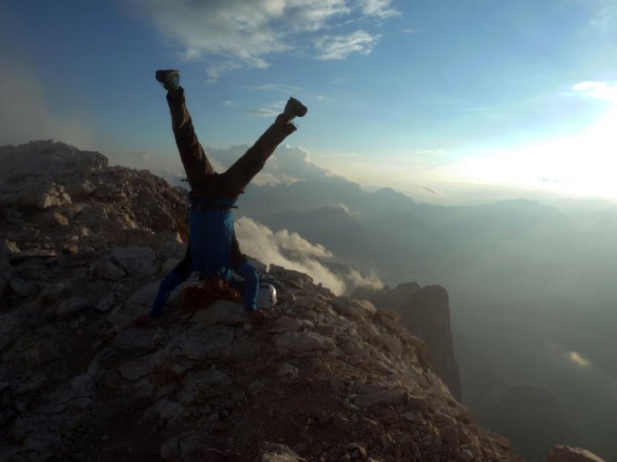 Mit einem Mega-Verhauer der uns 100 m abseilen kostetet 12 h Kletterzeit. Am Gipfel gegen 18:45 Uhr. Abstieg über Civetta Normalweg bis nach Pala Favera.