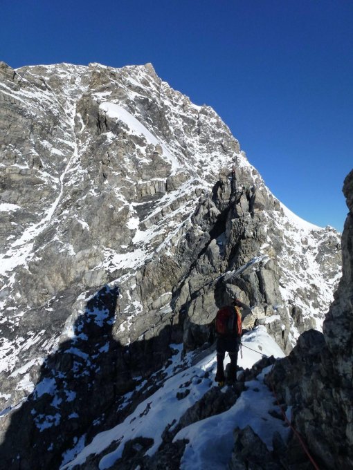 Ideale Verhältnisse. Perfekte Spur, überall Trittschnee, nirgends Eis. Fels trocken.