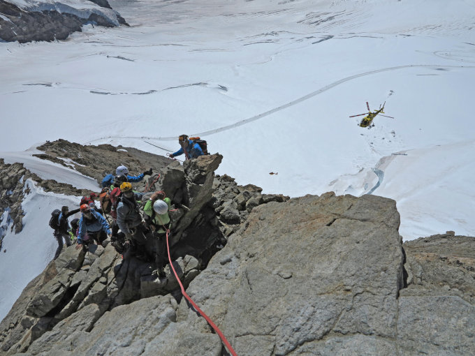 Die Situation am Berg wird sich kaum ändern bis zum nächsten grösseren Schneefall. Da sehr viele Personen mit wenig Erfahrung, Alleingänger oder Gruppen am langen Seil anzutreffen sind, ist die Benutzung der Sicherungsstangen unbedingt zu empfehlen.