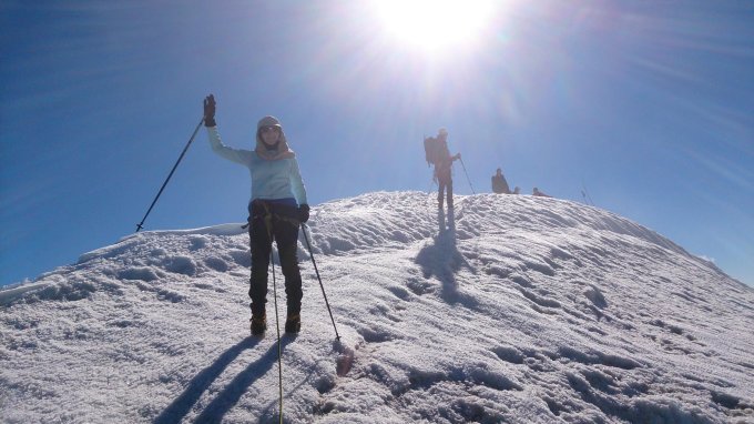 Beste Bedingungen.Untere Steilstufe problemlos mit Steigeisen und Skistoecken zu gehen.