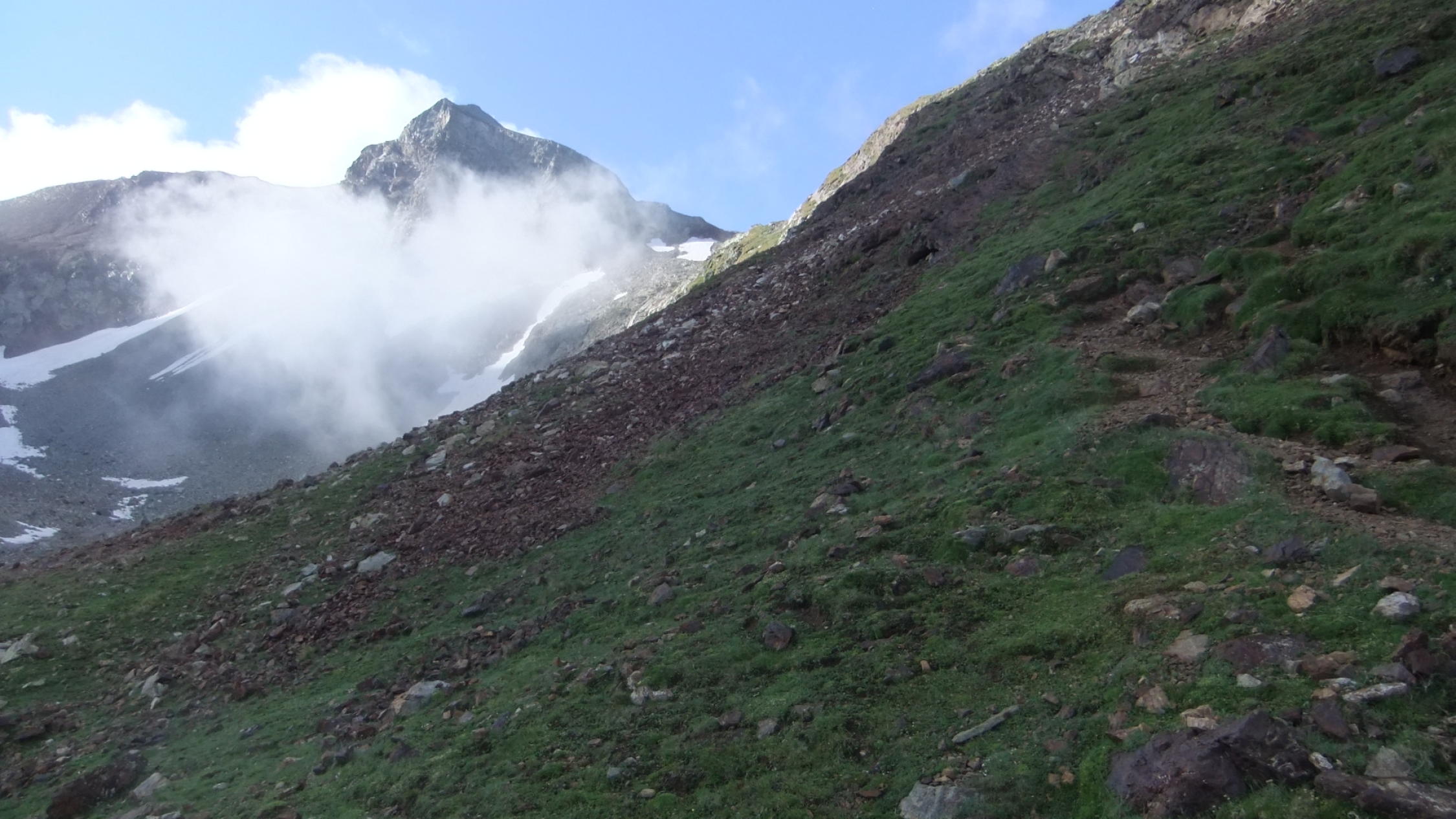 anfänglicher Nebel zog schnell nach oben, gab Sicht frei für 1 Stunde und deckte nach 12:00 wieder die Gipfel zu.