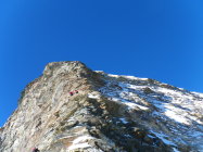 Wir hatten super Verhältnisse. Den ganzen Tag war es wolkenlos und angenehme Temperaturen. Nur auf dem Gipfel ein bisschen Wind. Die Steigeisen haben wir unter der Schulter angezogen.