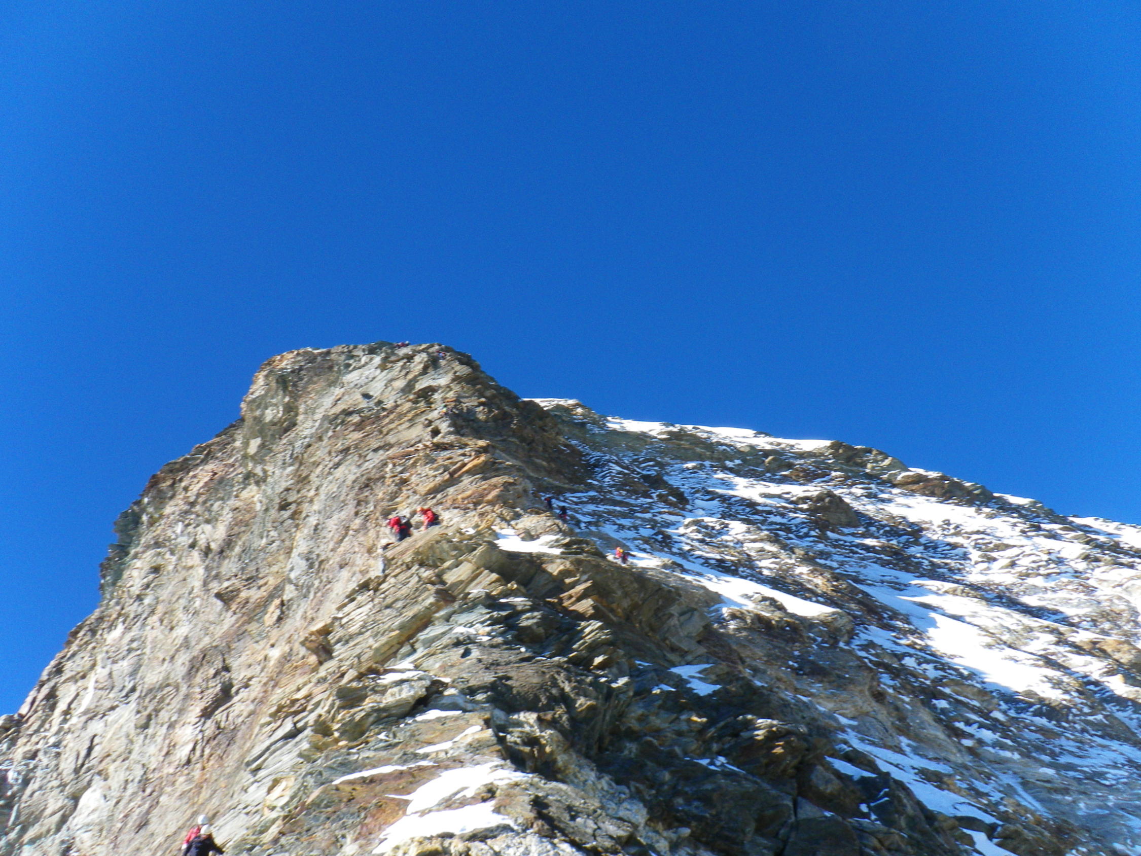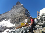 Da die Hörnlihütte die ganze Woche ausgebucht war (reduzierter Betrieb infolge der Umbauarbeiten), haben wir im Berghotel Schwarzsee übernachtet und sind um 3.00 Uhr von dort aus gestartet. Diese Variante ist nicht die Schlechteste. Kleine Zimmer, gutes Essen, keine Hektik am Morgen und man kann losgehen wann man möchte (zusätzliche knapp 700 HM und 1 1/2 Stunden bis zur Hörnlihütte). Wir waren kurz vor den ersten Seilschaften am Einstieg und mussten so nicht anstehen. Die ersten Seilschaften holten uns danach jedoch schnell ein. Wir liessen ihnen den Vortritt, trotzdem wurden wir von denen angeschnauzt (weil wir vor ihnen waren. Dass wir aber vom Schwarzsee herkamen, haben die nicht gescheckt)! Einige Zermatter Bergführer sollten sich mal ihr Verhalten überdenken....es ist mehr als bedenklich!