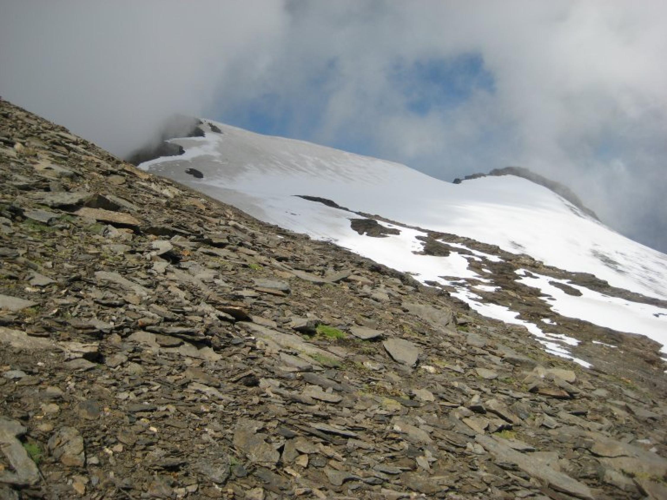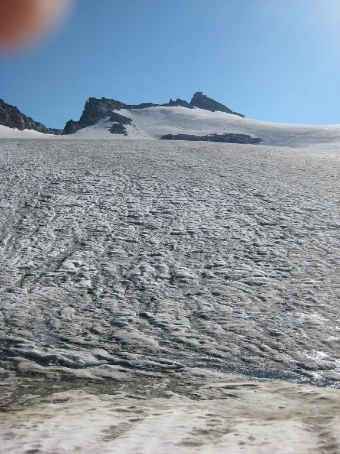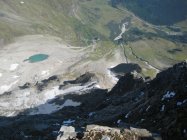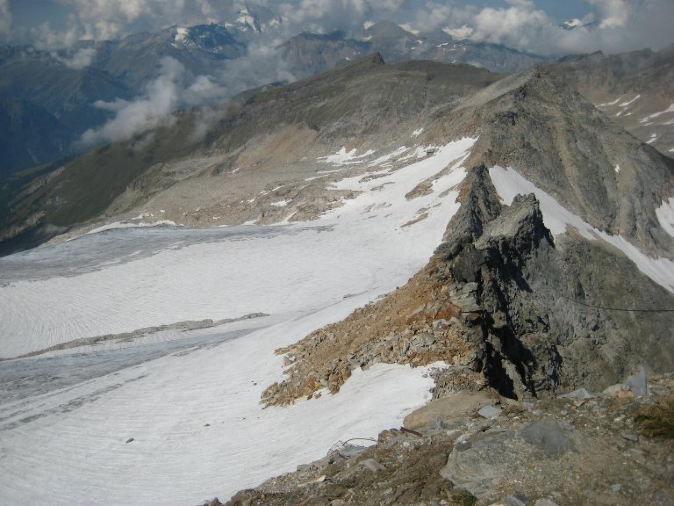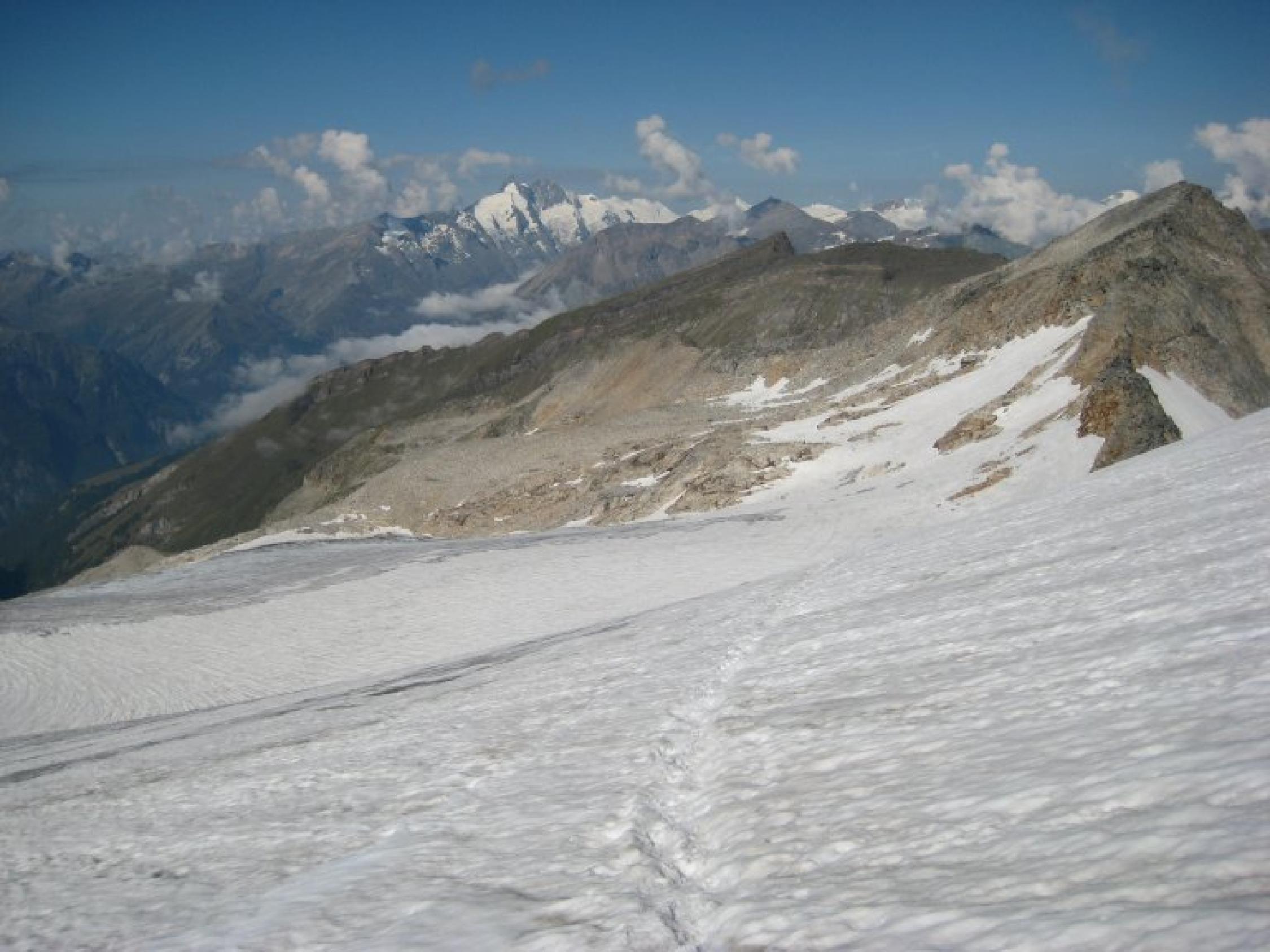 Bis Kleinfleißkees alles trocken. Am Kees 1. Teil aper nach oben hin noch dünne Firnauflage im Steilstück wieder kurz aper. Auch für Sologänger Z.Zt. zu verantworten, aber Steigeisen sollten schon dabei sein.