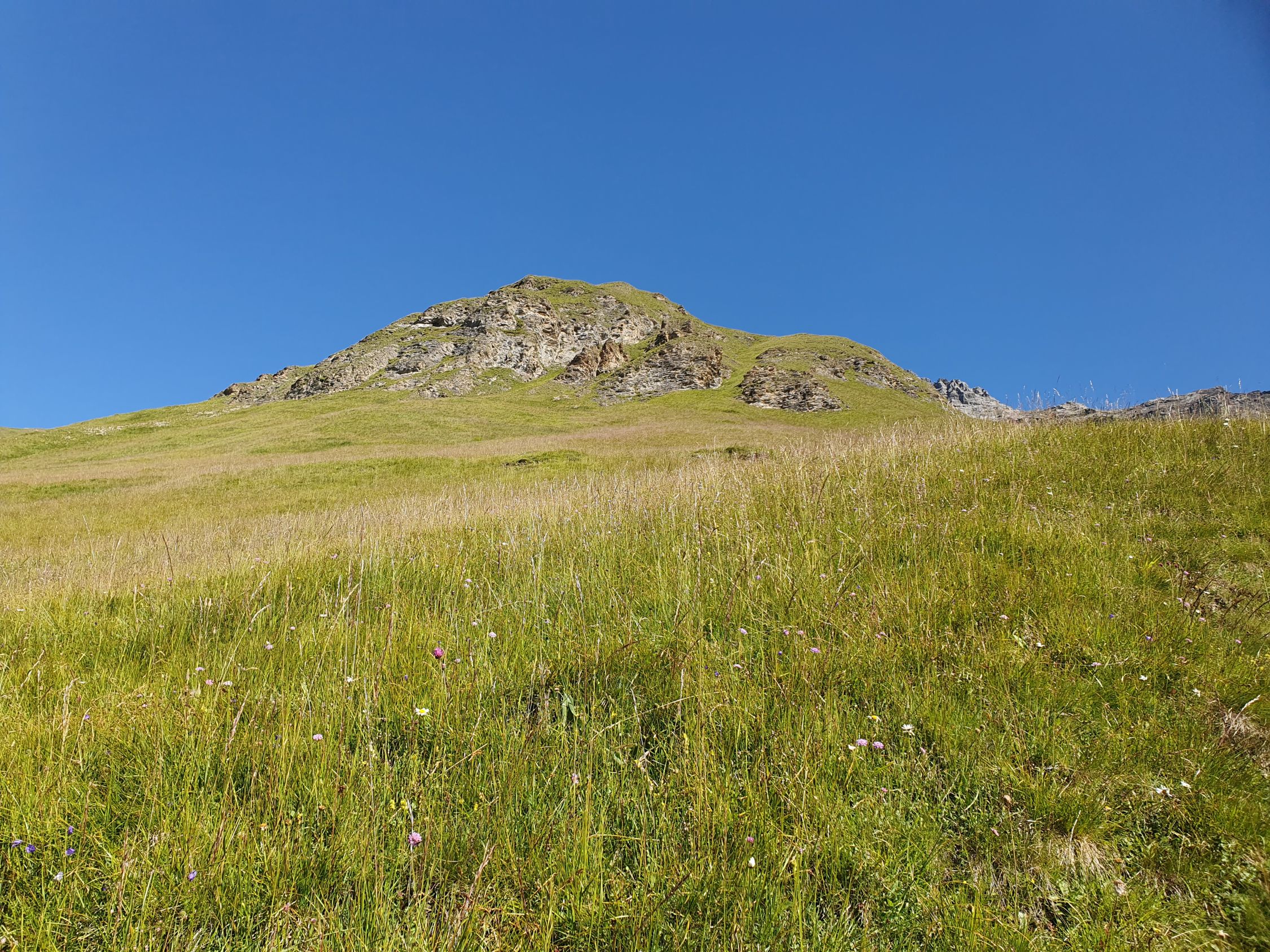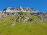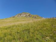Dann geht es mässig steil weiterhin über Wiese zum Punkt, wo auf der Karte "Tschütta" geschrieben ist. Hier möchte ich kurz eine Warnung aussprechen: Die ganze Wiese ab hier ist voll mit versteckten Murmeltierlöcher versehen. Beim Abstieg hat es mich rechts erwischt, was meinem Knie nicht so gutgetan hat.