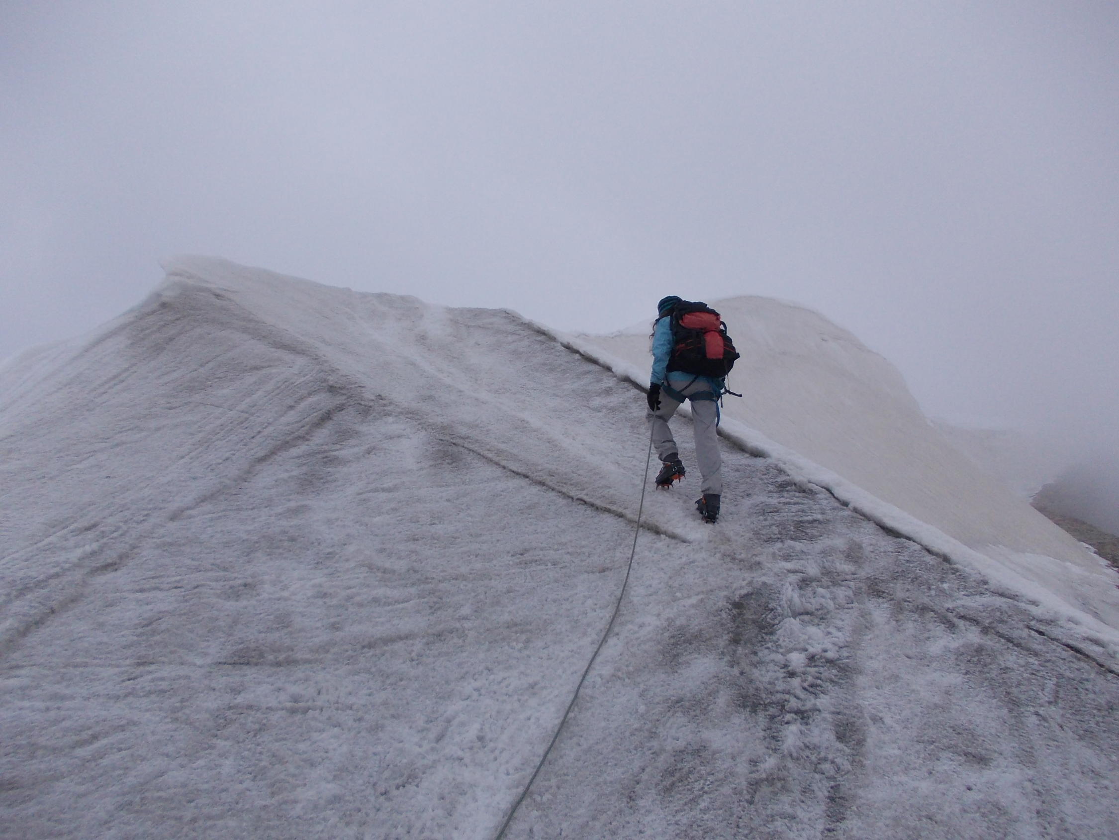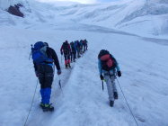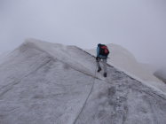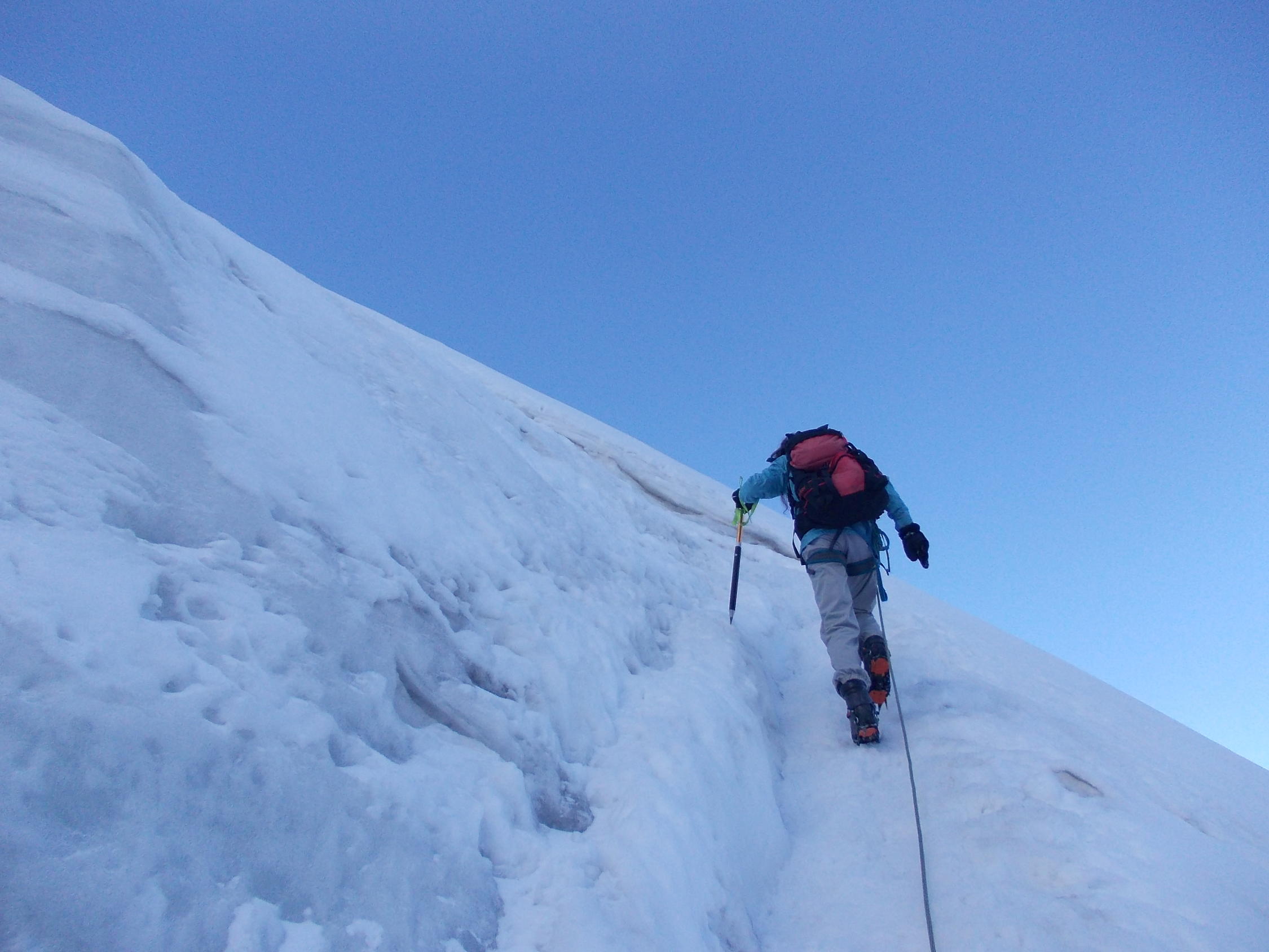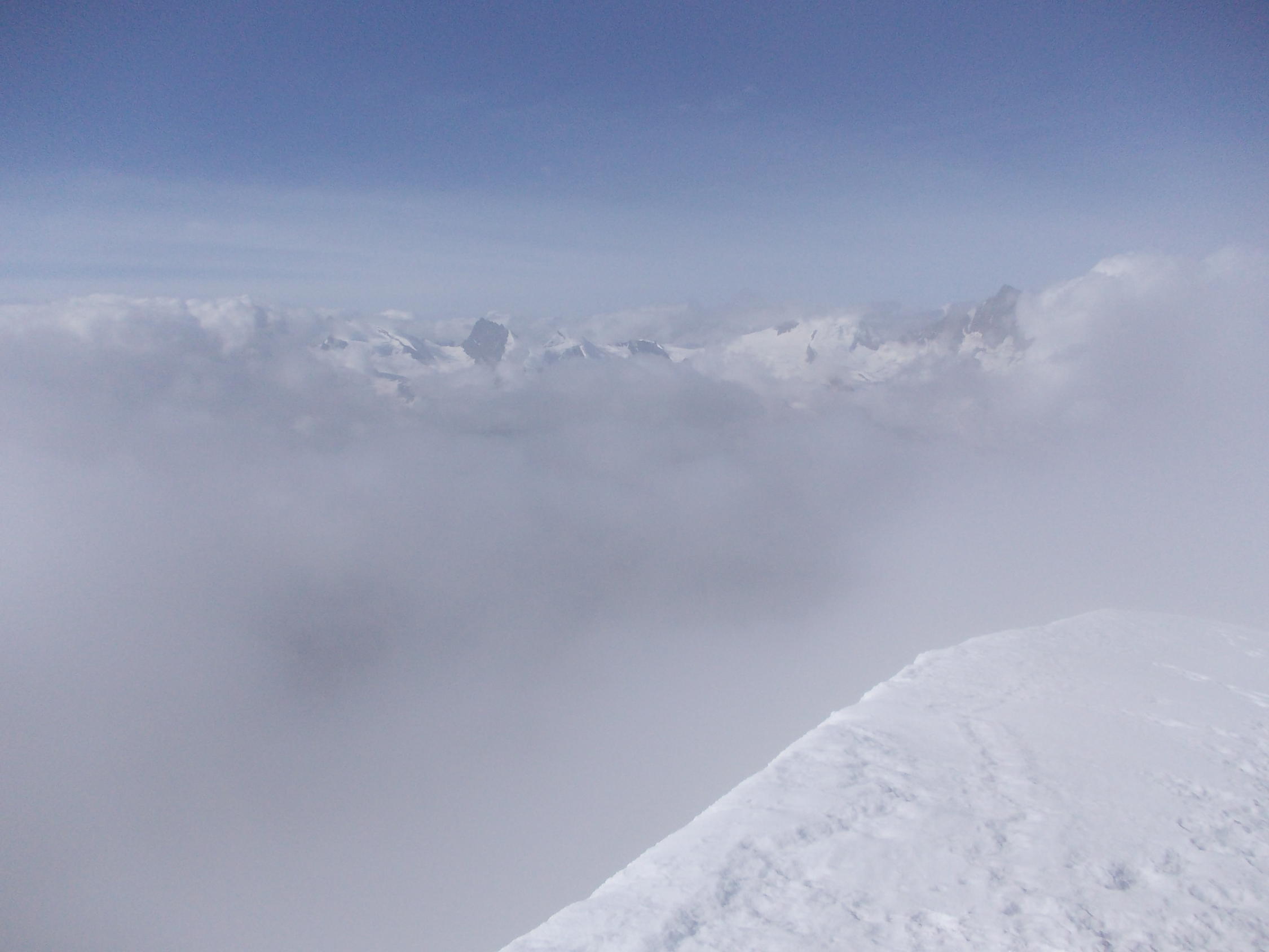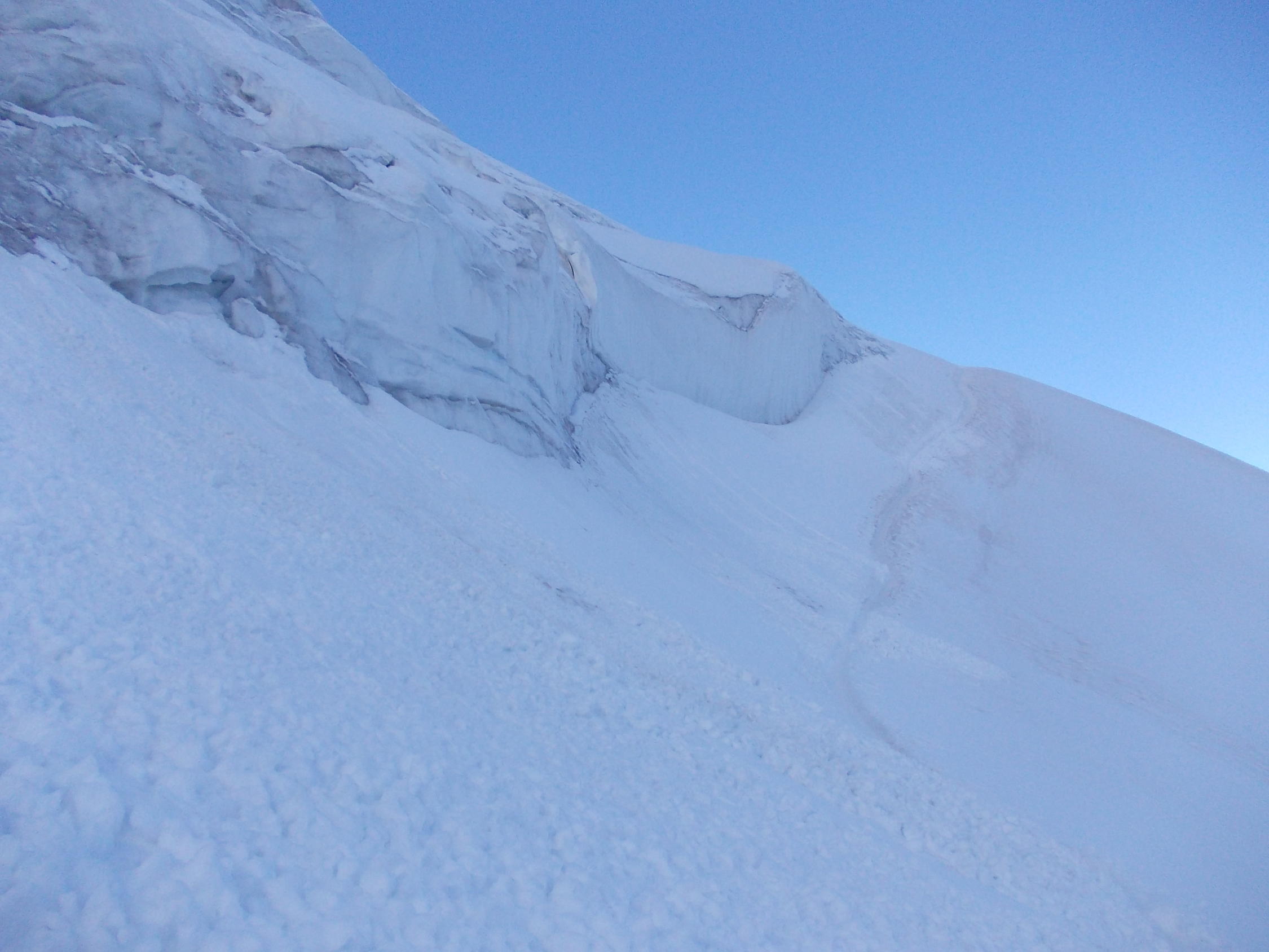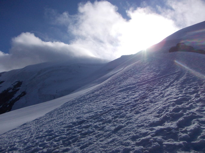 Aufstieg: Immer noch beste Verhältnisse. Die Auf- und Abstiegsroute ist ausgezeichnet gelegt. Es hat immer noch viel Schnee und Firn auf dem Gletscher. Die Spalten sind gut eingeschneit.