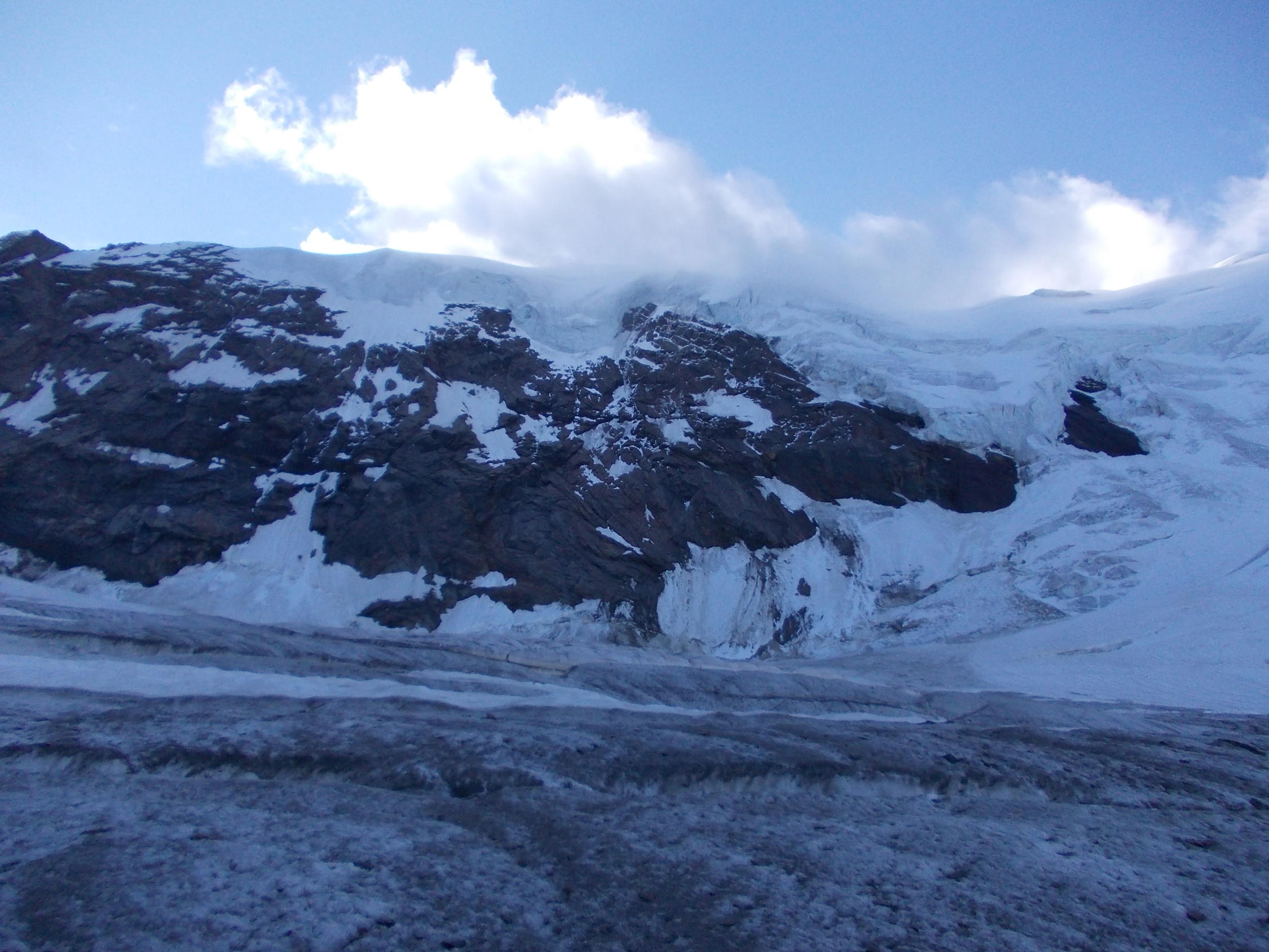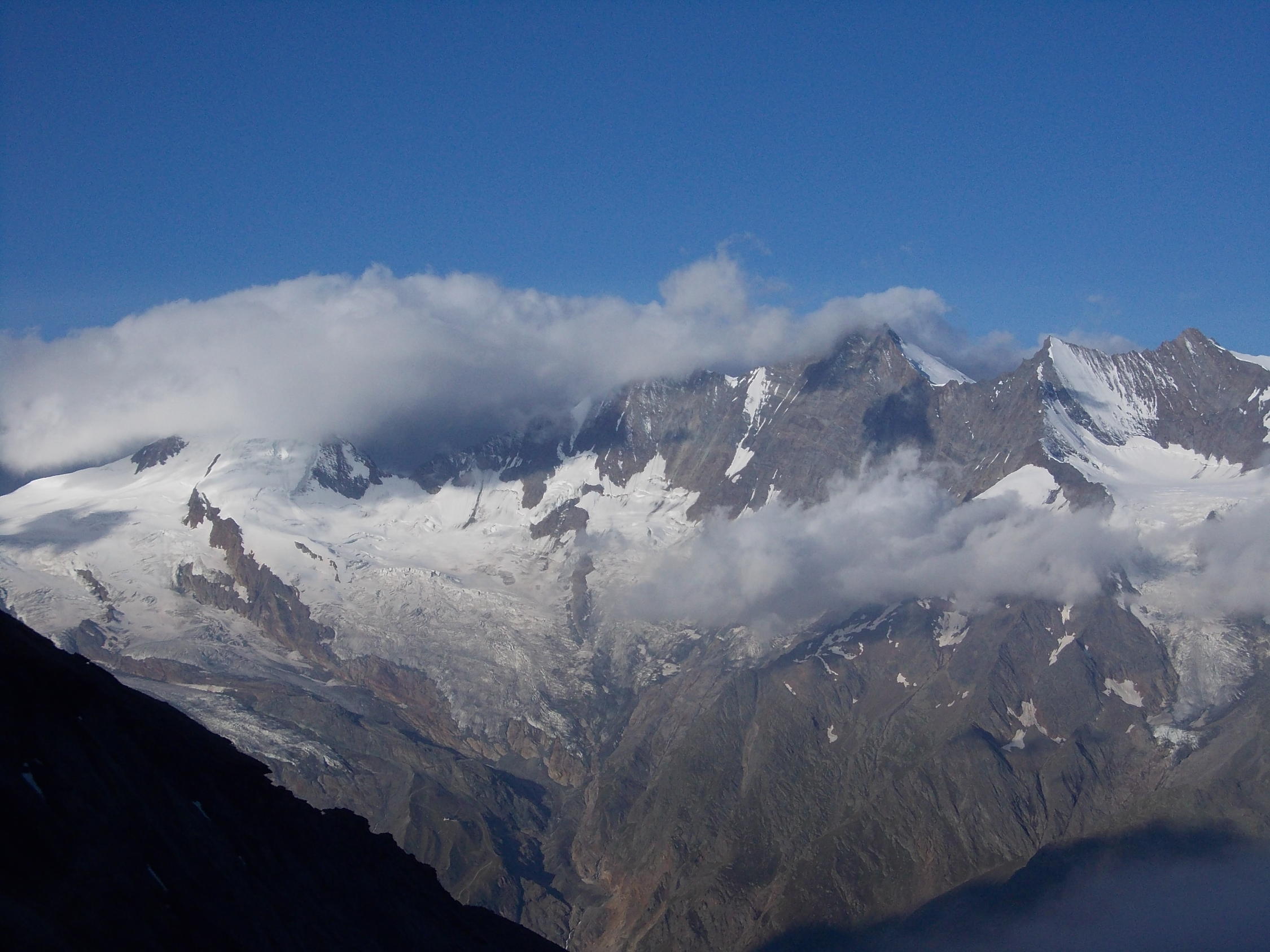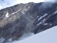 Unterhalb des Nordgrates zwischen den Punkten 3717m und 3928m ist ein gewaltiger Felssturz abgegangen. Was heisst gewaltig? Das Volumen war ca. ein 10m3 grosser Camion. (siehe Foto)