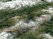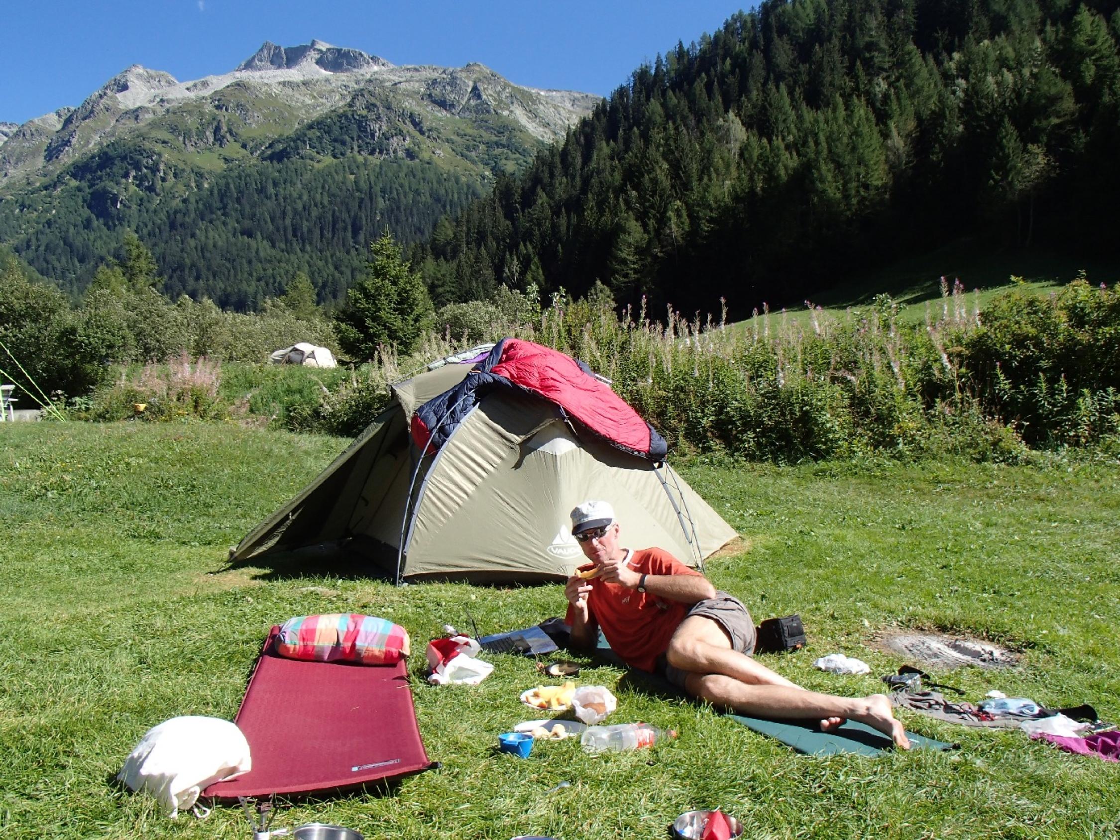 Campingplatz Binn (ca. 1475m) - Mässersee (2120m) (dieser Abstecher ist absolut lohnend) - Geisspfadpass (Passo della Rosso, 2474m)) - Alpe Devero (ca. 1640m)) - Alpe Misanco (1907m) - Monte Cazzola (2330m) - Scatta d'Orogna (2461m) - Passo di Valtendra (2431m) - Alpe Veglia (Naturparkhaus, ca. 1720m)