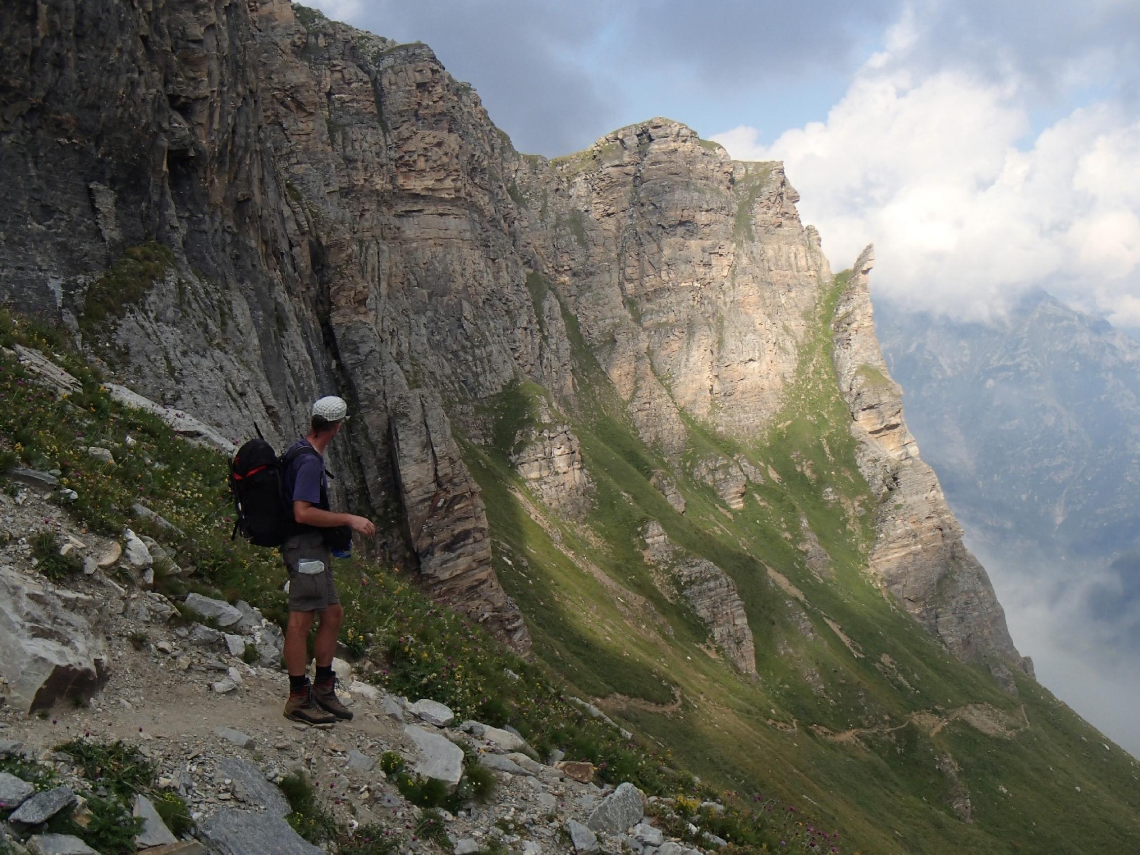 Abstieg vom Ritterpass zum Chummibort tw. exponiert im Absturzgelände, nicht versichert.