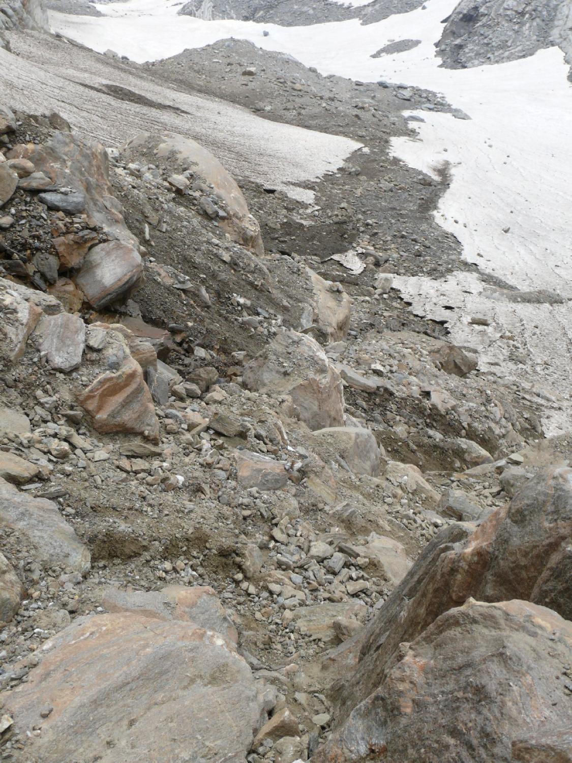Aufstieg zur Leone Hütte ab Alpe Veglia aus meiner Sicht aktuell NICHT vertretbar - zumindest auf Weg wie er in aktuellen Karten verzeichnet ist. Evtl. gibt es Variante direkt über Gletscherrest, der den rechten Weg über Moräne umgeht.