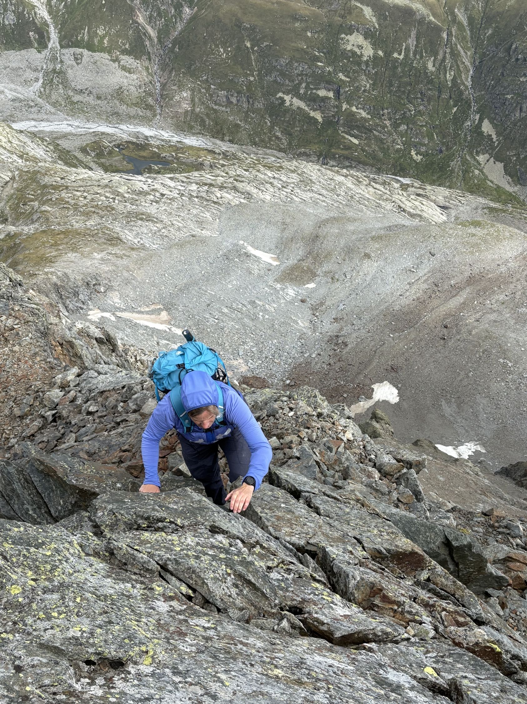 Gemäss Führer im Silbernagel eine wunderschöne lange Grattour. Wir empfanden das nicht so. Entschieden zu viel loses Material. Der Kletteranteil ist sehr klein. Die Gegend und die Aussicht dafür sind sensationell. Die besteigen danach noch den Piz Gaglianera, der mehr festen Fels aufweist, jedenfalls im oberen, steileren Teil. Eigentlich wollten wir weiter dem Grat bis zum Piz Greina, der Grat sah aber ebenfalls sehr brüchig aus. So stiegen wir weglos runter zur Greina-Ebene.