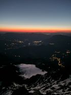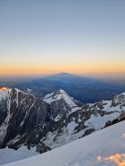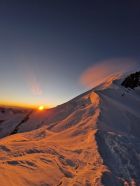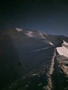 Im gouter couloir liegt immernoch schnee, steigeisen wurden auf 3100m Montiert und nicht mehr angezogen bis zum gipfel. Auch auf dem Gletscher liegt überall Schnee es hat keine blanken stellen. Losgeloffen bin ich um 16:15 auf 2100m bei der Bahnstation Mont Lachat da die nid aigle wegen rennovationsarbeiten geschlossen ist. Ziel war es um 20:30 das gouter coulioir zu durchqueren. Da ich meine eigene Fitness und damit die Zeit falsch eingeschäzt hatte was sich durch die ganze tour nicht verändert hat war ich viel zu früh bei der tete rousse. Aslo 1h warten und dan ohne jeglichen steinschlag davor oder danach zügig durch und hoch zur gouter Hütte. Diese erreichte ich um 22:30 was immernoch zu früh war weshalb ich dort eine etwas länger pause gemacht habe. Nach einem kleinen Nickerchen im Schuhraum gings um 00:00 weiter Richtung Valot Hütte. Auch hier hatte ich völlig falsch eingeschäzt wie sehr mir die Höhe Probleme bereiten wird beim aufstieg weshalb ich nach ca. 2h schon dort war. Alleine war ich jedoch nicht. Zu meinem erstaunen sagen dort zwei eingewickelt in allen Decken. Nachdem ich Ihnen die Uhrzeit mitteilen legte ich mich auch hin um eine stunde zu schlafen und verbrachte die restliche dreiviertelstunde damit nicht kalt zu haben. um 4 uhr nachdem die ersten Gruppen langsam näher kamen etnschloss ich mich loszugehen richtung gipfel. Auch hier leider wieder zu schnell gewesen weshalb es dann noch ein bischen zu windig und kalt für eine angenehme gipfelpause war, dafür schön zur dämmerung auf dem Gipfel gestanden um 5:30. Der Abstieg ging auch problemlos und so war ich nach zwei pausen in den jeweiligen hütten um 14:00 wieder bei der Bahnstation Mont Lachat.