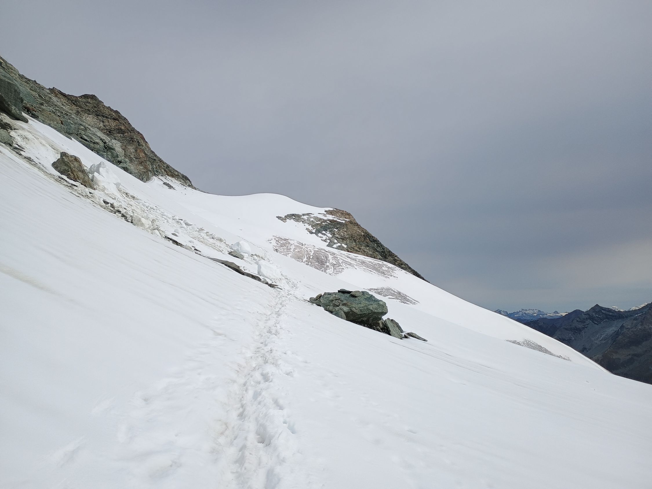 Waren heute ganz alleine am Berg. Eigentlich ganz nette Bewartung auf der Bertol Hütte und der Hüttenzustieg ist vorbildlich markiert, ab da wo keine Pfadspur mehr vorhanden ist, durchgehend bis zur Hütte mit Fähnchen besteckt. Ein grosses Lob!