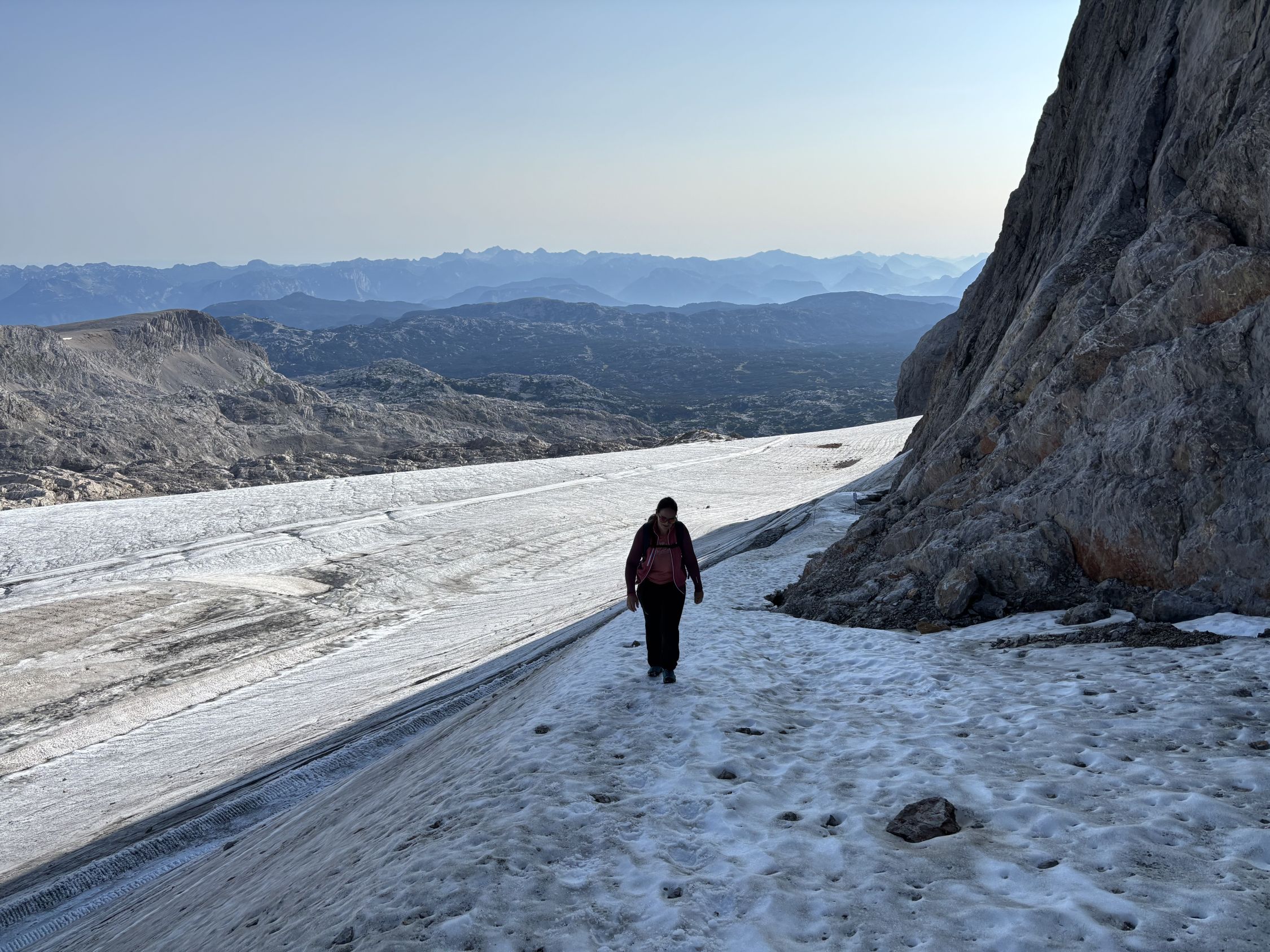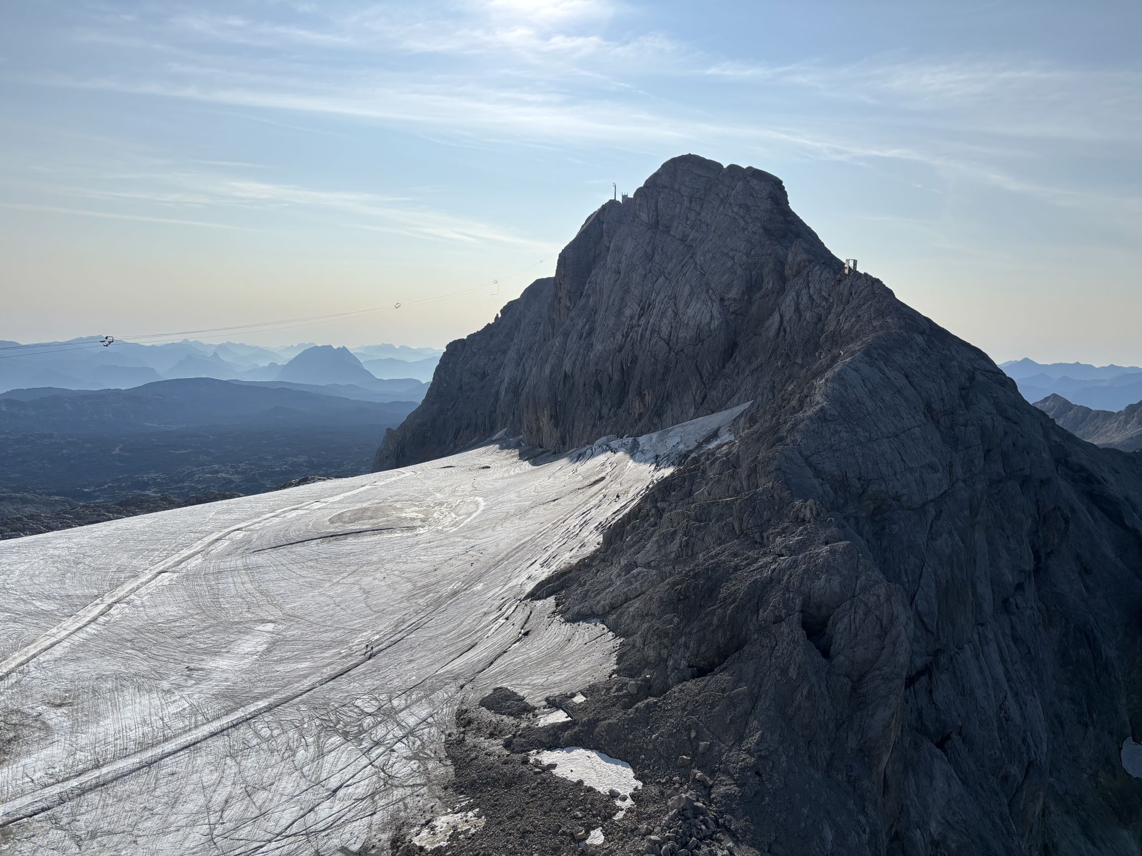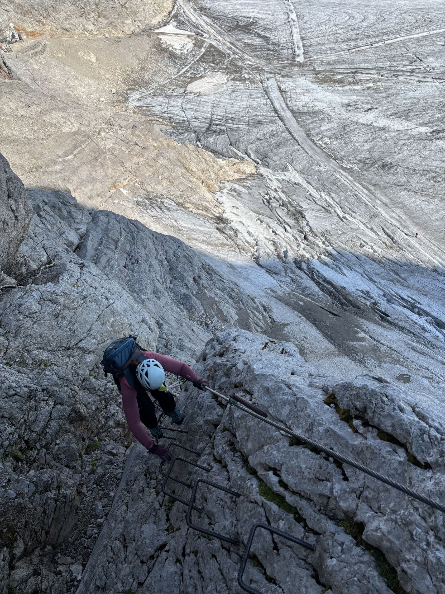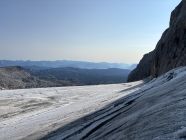 Sehr gute Verhältnisse für diese Tour und im Vergleich zu den anderen Touren nich allzu frequentiert. Wir waren erstaunlicherweise meist allein und haben nur wenige andere getroffen. Wir sind die Variante im Aufstieg über den Rosmarie-Stollen gegangen und dann den normalen Westgrat im Rückweg. Fels überall trocken und schneefrei. Steiganlage gut ausgebaut. Gletscher mehr oder weniger fast komplett aper. Lediglich im Randbereich ein paar schneebedeckte Spalten, da aber gut zu sehen und zu umgehen sind. Randkluft zum Einstieg der Variante Rosmariestollen aktuell noch in Ordnung, wird aber mit den warmen Tagen sicher abnehmen und dann kritisch werden.