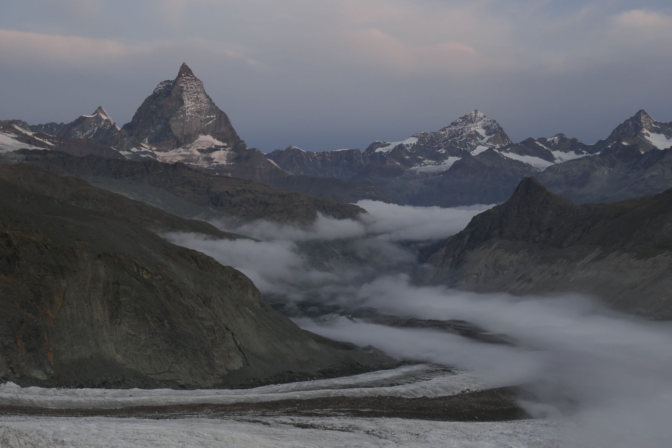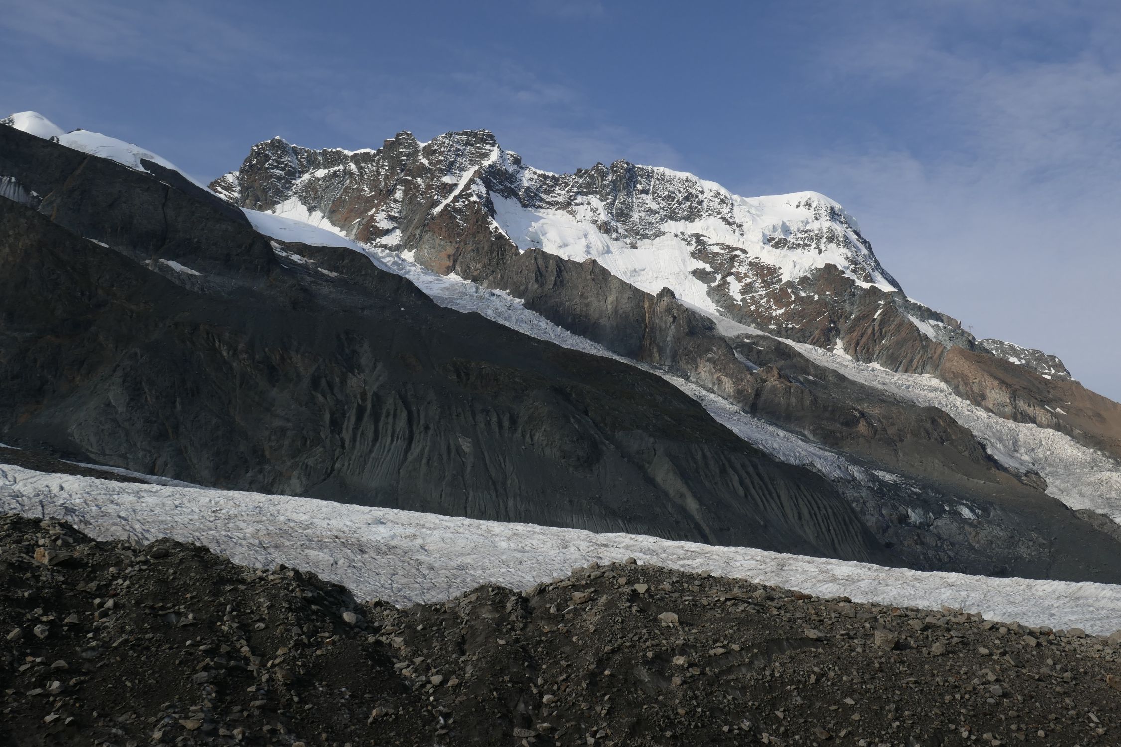 Die Rückkehr auf dem alten Weg war eine (durchaus lohnende) Ersatz-Variante zum ursprünglich einmal geplanten Abstieg über den ganzen Gletscher nach Furi. Der Ausstieg aus dem Gletscher beim Zungenende scheint mir aktuell nicht machbar (vgl. ergänzte Infos bei der entsprechenden Route).