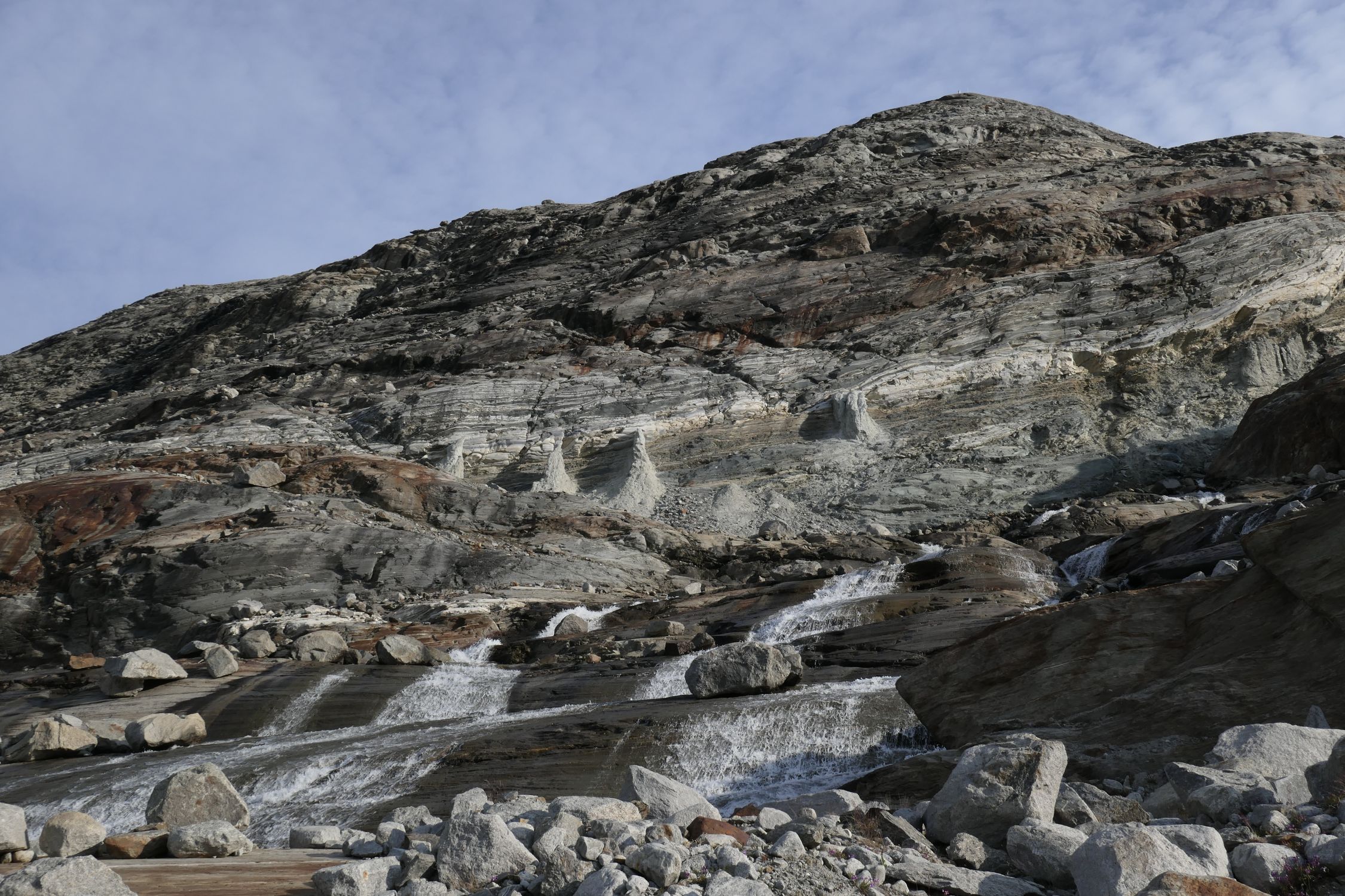 Auch der neue / obere Hüttenweg ist nicht ganz ohne. Wenn man am (etwas steilen) Gletscherrand (hüttenseitig) eine Rast einlegt, erlebt man so einiges ...