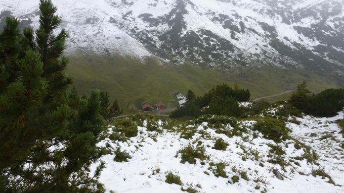 In Summe machte die Schneeauflage auf den steilen Wiesenhängen das Laufen äußerst mühsam. Erst im Abstieg nach der Allhöhe kam ich aus dem Schnee.