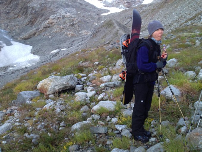 Langer Zustieg über die Moräne, da im Umpol noch kein Schnee liegt. Gletscher mit idealen Verhältnissen- Achtung aufgrund der Ausaperung sind diverse alte Liftseile besonders in der Abfahrt äusserst Gefährlich, wenn man in diese hineinfährt. Sie liegen ziemlich Mittig des Gletschers in Fallinie- wird noch heikler bei Schnefall, wenn diese halb zugedecht sind. Für den Übergang am Bergschrund könnte ein Seil hilfreich sind, die Felsplatten waren bei uns noch eisig