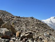 Die Wegfindung ist in der Nacht nicht ganz einfach und wir haben uns mehrfach etwas verstiegen, weil wir die Steinmänner nicht gesehen haben. Über den Gletscher führt eine gute Spur - Achtung es hat ein paar Spalten die bei starker Erwärmung kritisch werden könnten.